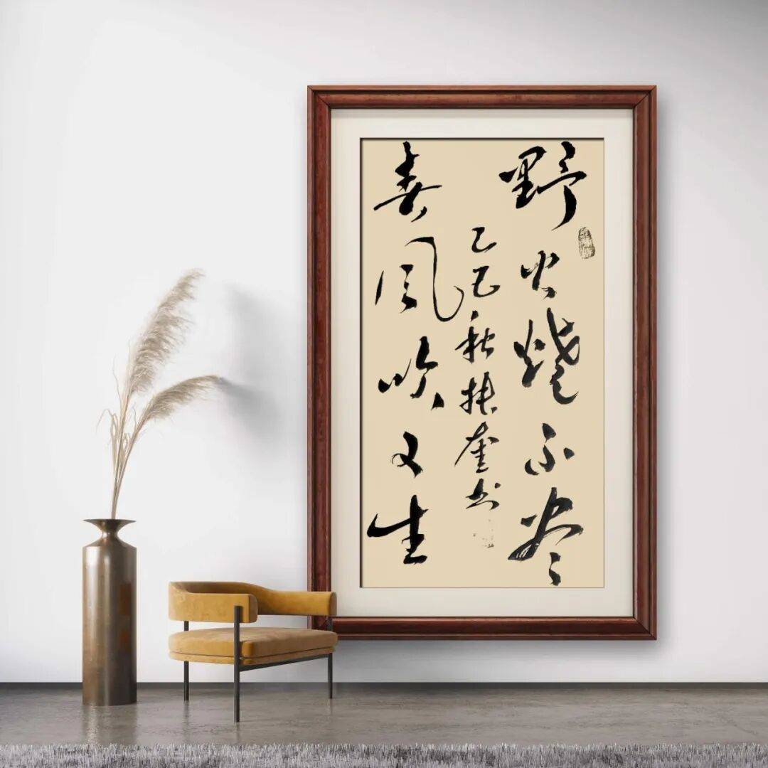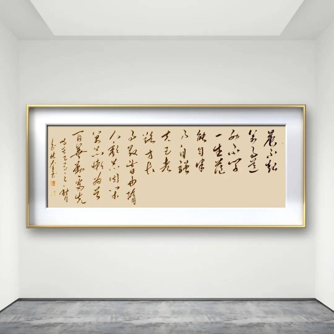 数十年的临池不辍,让先生对草书的笔法、结字、章法有了深刻的领悟,也让他练就了扎实的笔墨功底。他始终坚守中锋用笔的基本准则,同时灵活运用侧锋,使线条既保持了“锥画沙”“印印泥”的厚重质感,又兼具灵动洒脱的气韵。在他的笔下,线条的粗细、长短、轻重、缓急,都拿捏得恰到好处,每一笔都力透纸背,每一线都富有弹性,如行云流水般连贯自然,又如惊雷乍响般铿锵有力。这种对笔墨的精准把控,并非一蹴而就,而是源于他日复一日的锤炼——寒来暑往,春去秋来,无论酷暑难耐还是寒冬腊月,他都坚持每日习书,从不懈怠,在笔墨的挥洒中,逐渐达到了心手合一、笔随心动的至高境界。正如他所言:“书法是一件‘慢功夫’的事,需要在反复临帖、不断实践中找到属于自己的笔墨节奏。”这份对传统的敬畏与坚守,成为他草书艺术最坚实的根基。