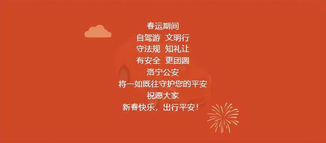 今年春运从2026年2月2日开始到3月13日结束,共计40天。春运是一年中公路客货流量最集中、人员流动最频繁的时期,也是道路交通事故易发高发期。为确保广大群众出行安全,洛宁县公安局发布春运期间“两公布一提示”,请广大群众春运出行提前了解路况,合理安排路线,主动防范交通事故风险,做到安全文明出行。
