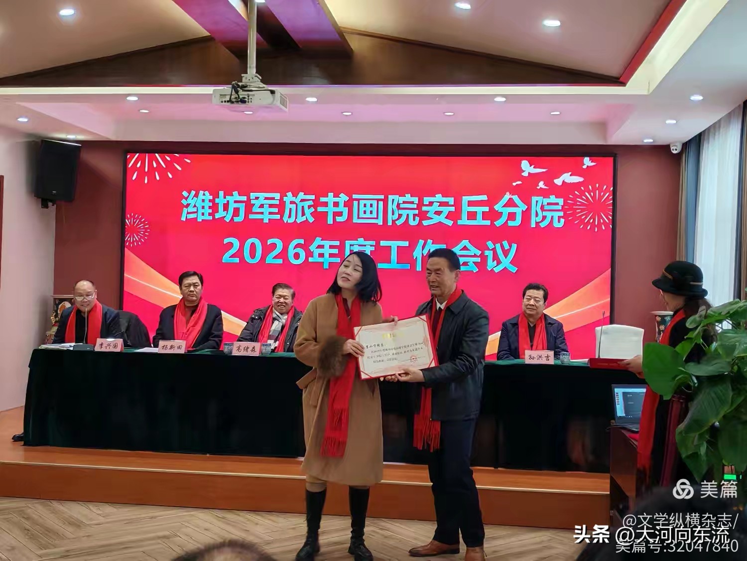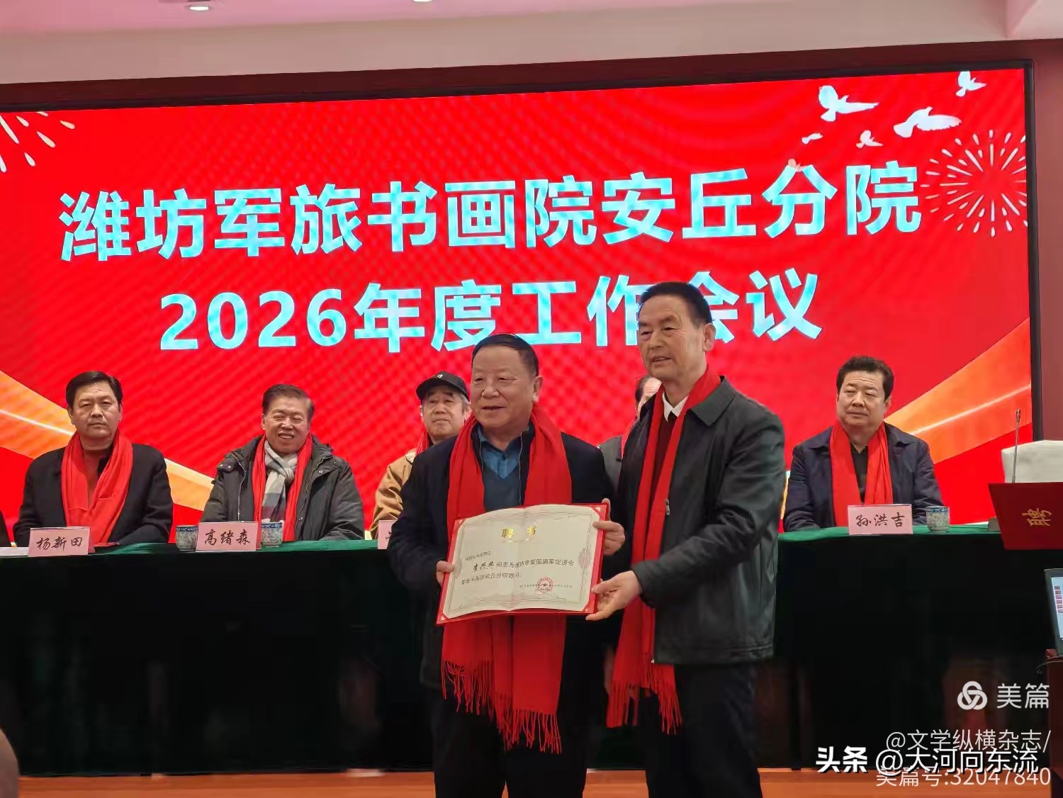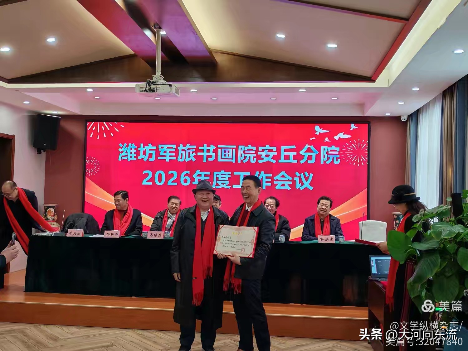 此次会议的成功举办,不仅总结了安丘分院过去一年的丰硕成果,更通过聘任新生力量、展示创作成果、明确发展方向等举措,为2026年的工作奠定了坚实基础。在军民融合国家战略背景下,潍坊军旅书画院安丘分院的艺术家们正以笔墨为缰,以宣纸为原野,在军民融合的大道上策马扬鞭,向着更加辉煌的未来奋勇前行。他们正以其独特的方式,书写着新时代军旅文化的新篇章。