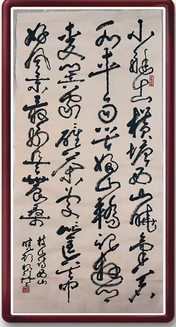 《天下第一虎》则显威震山河之势。杨先生以篆籀笔法入行草,虎形隐现于笔墨之间,形神兼备,不怒自威。这幅作品不仅是对“虎”之意象的书写,更是对中华文化中“气吞万里”精神气概的时代诠释,与《天下第一龙》共同构成了刚柔并济的文化象征体系。