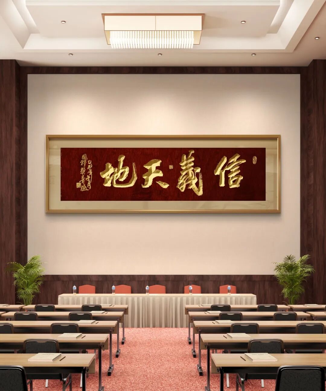 从提升与建议的角度来看,整体作品已经非常出色,但如果能在“信”字的竖笔与横笔之间的过渡上稍作调整,使得其衔接更加自然流畅,可能会让整个字形的节奏感更为均衡。另一个细节可以在“天地”部分,适当调整字距,使得字形之间的呼应更为紧密,可能会进一步提升作品的整体感。