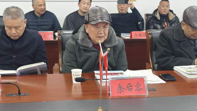 鄂州市公安局退休干部,许氏九修宗谱总编许崇轩代表许氏谱局,向余氏谱局致贺,对谱局成员的辛勤付出深表钦佩,并现场赋诗相赠。他在发言中提议,邻村许、刘、余三姓可携手编撰宗族变迁史,作为粑铺村村史资料留存,共筑乡村文化根脉。