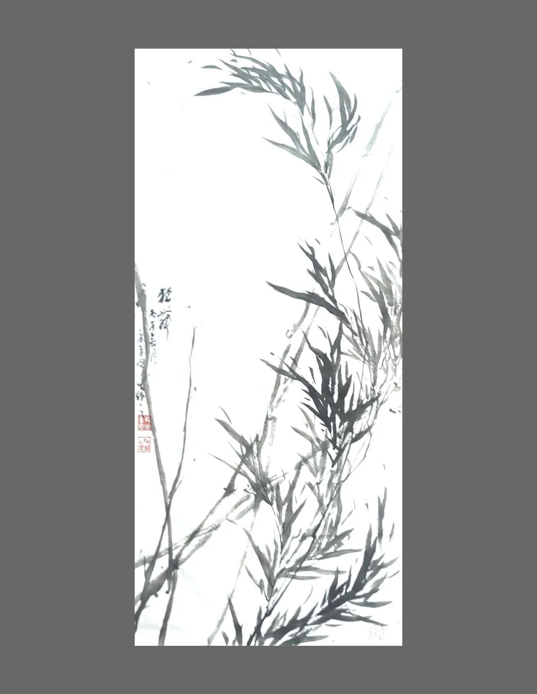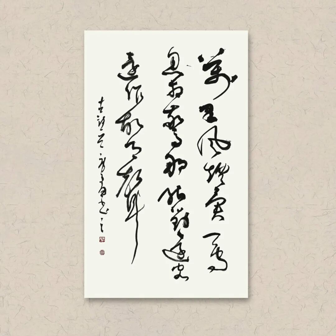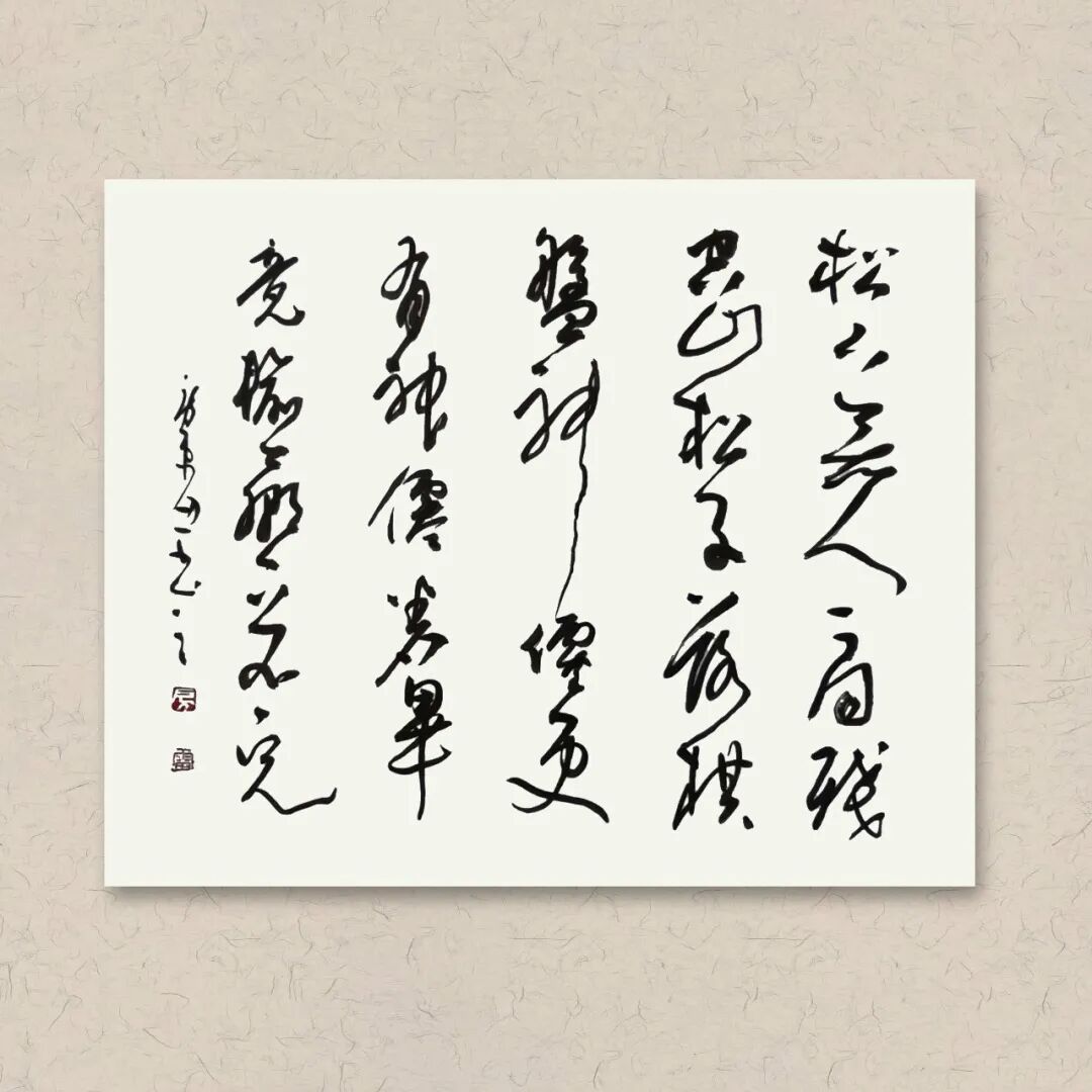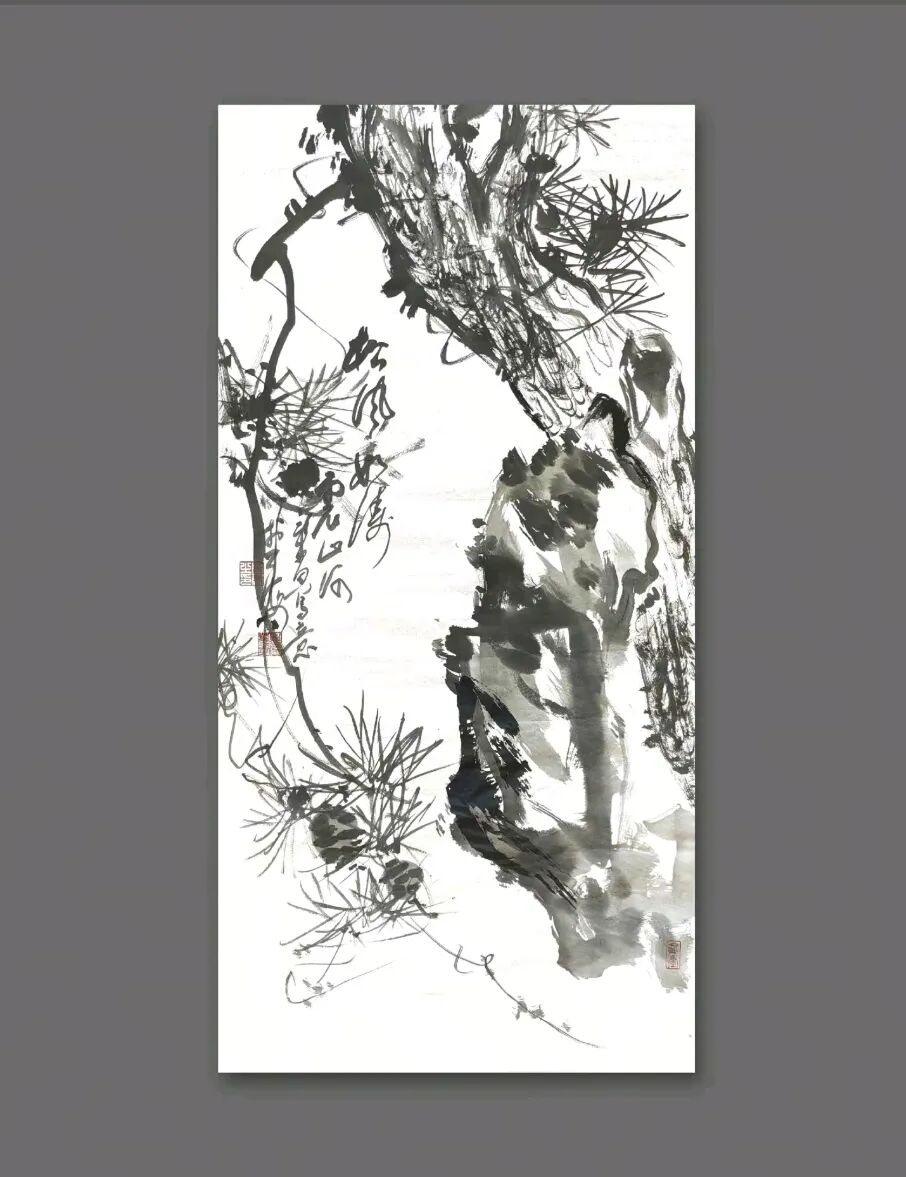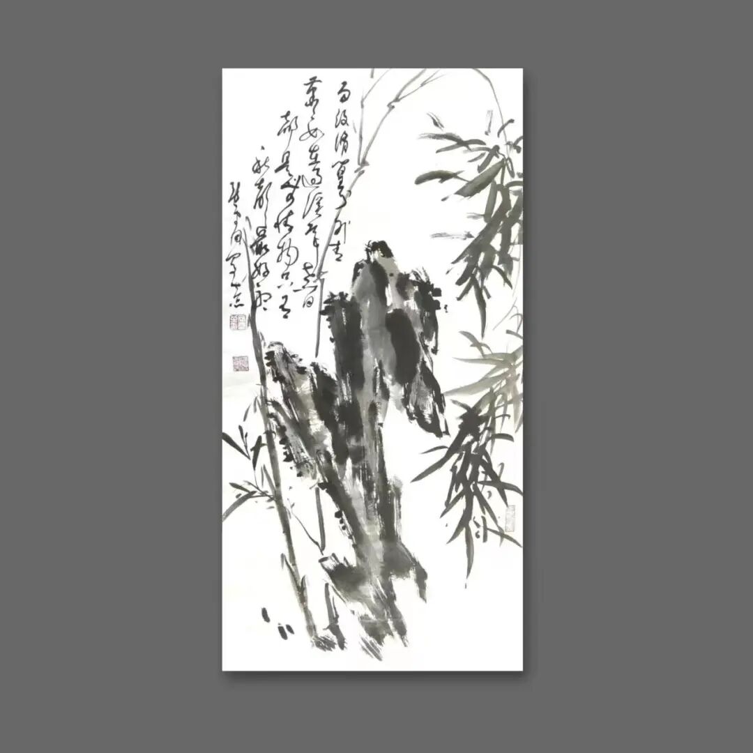 其书其画,风骨一脉相承。他的书法,追求飘逸中见坚韧的质感,恰似田埂上的芦苇,风过处摇曳生姿,根却深扎泥土,傲然挺立。这份笔墨精神,亦融入他的画作之中——《狂舞》墨竹图,竹叶如草书般奔放洒脱,竹干却如篆书般挺拔刚劲,一笔一画,皆是“君子藏器,刚柔并济”的写照。他笔下的梅,枝干虬曲如铁,花朵清雅如雪;他绘的马,不必扬蹄奔腾,静立时亦有风骨暗藏,这份于淡雅中见坚韧的气质,正是他书法精神的延伸,亦是他人生态度的写照。
