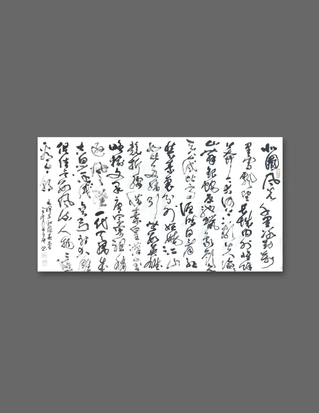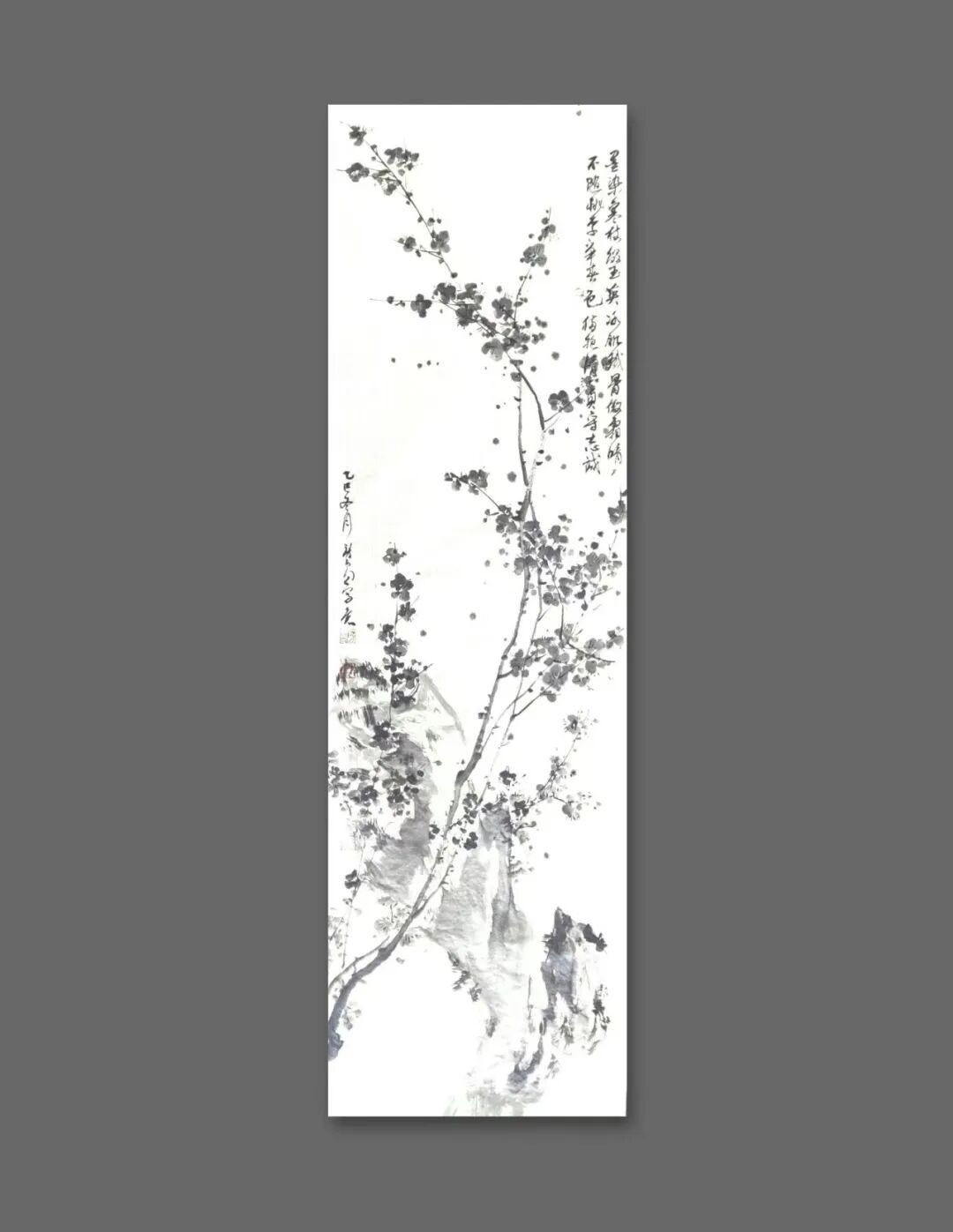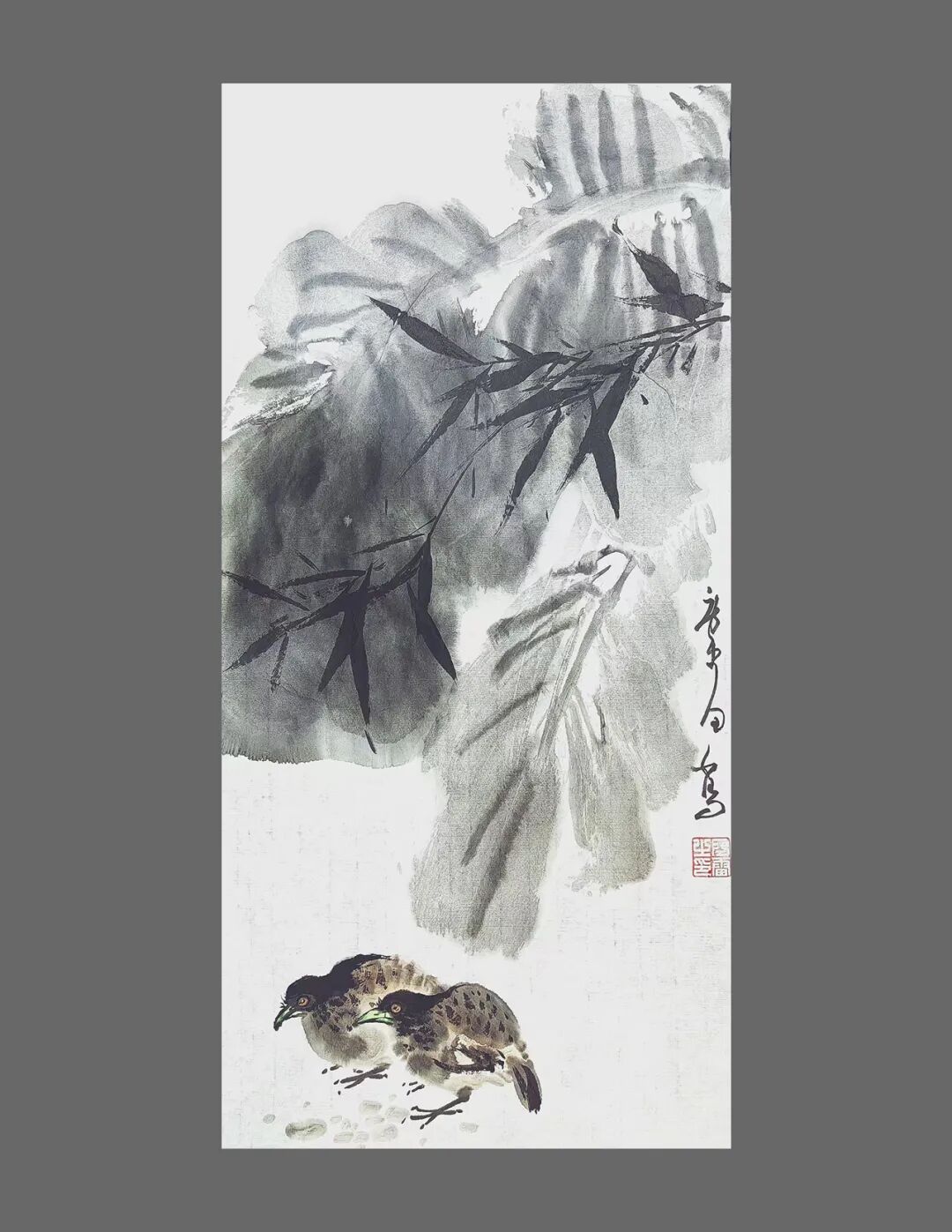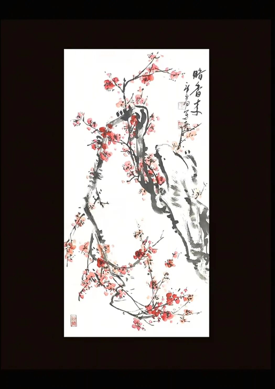 其书其画,风骨一脉相承。他的书法,追求飘逸中见坚韧的质感,恰似田埂上的芦苇,风过处摇曳生姿,根却深扎泥土,傲然挺立。这份笔墨精神,亦融入他的画作之中——《狂舞》墨竹图,竹叶如草书般奔放洒脱,竹干却如篆书般挺拔刚劲,一笔一画,皆是“君子藏器,刚柔并济”的写照。他笔下的梅,枝干虬曲如铁,花朵清雅如雪;他绘的马,不必扬蹄奔腾,静立时亦有风骨暗藏,这份于淡雅中见坚韧的气质,正是他书法精神的延伸,亦是他人生态度的写照。