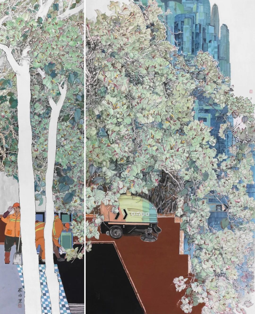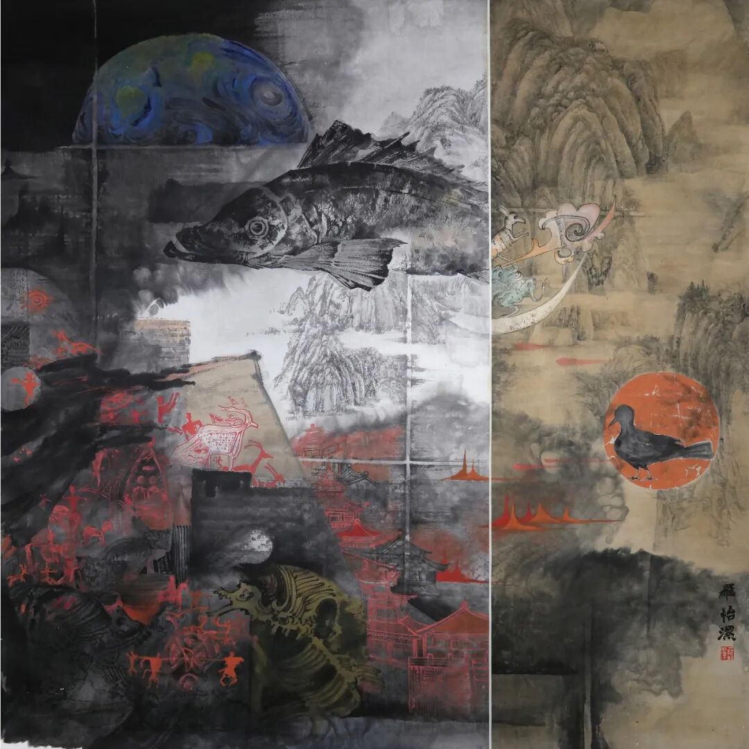《繁华深处勤者在》179 X 145(48十97)cm