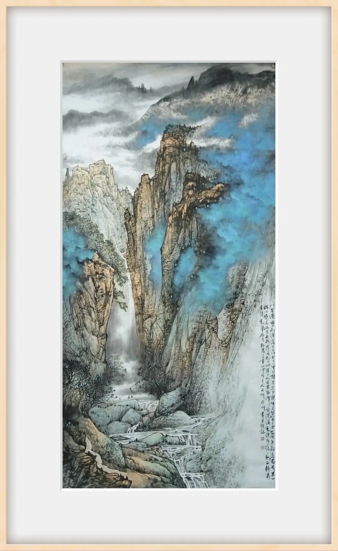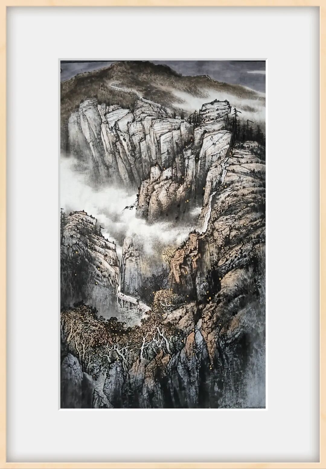 品读邢亚洲的作品,浑雄、壮阔,尽收眼底。给笔者的不仅是视觉上的美感,更是心灵深处的震撼,让人浮想联翩,有一股感叹不得不抒发,有许多感受想与大家一起分享,这就是邢亚洲山水画的魅力。为山河写照,为艺术情诉。邢亚洲的每一幅作品都呈现出了壮阔美、奇秀美、厚重美、阳刚美、灵气美、诗意美,每一笔都倾注着邢亚洲对山水画的执着之情。他沿袭唐宋时期荆、李、刘、马、夏、范宽等古人技法的脉络,吮吸传统的精华,奋力创新,自成一格。无论是构图、设色,无论是山、石、树、木、云、水的笔法,都突现出他由心而发的创作思想,粗中有细,细中见奇。笔笔生动,处处苍润,可见笔墨功力之深厚。