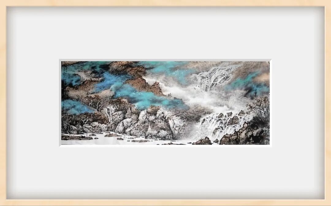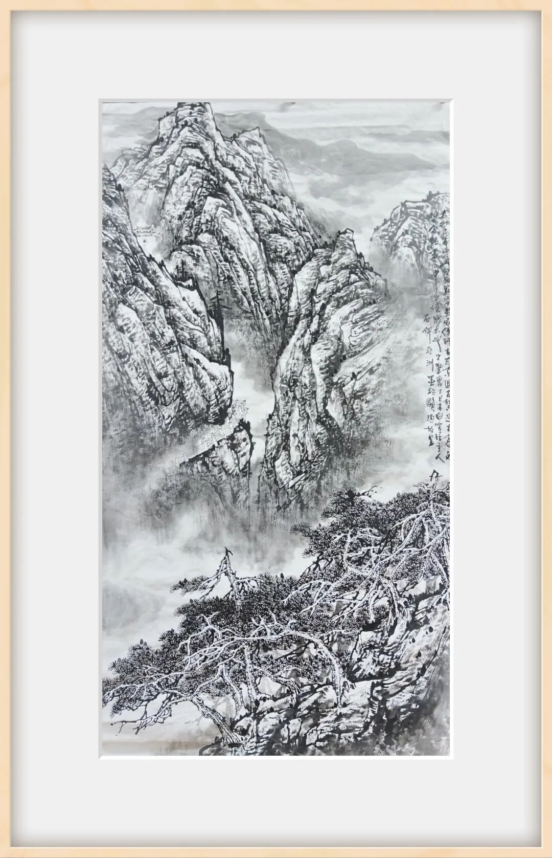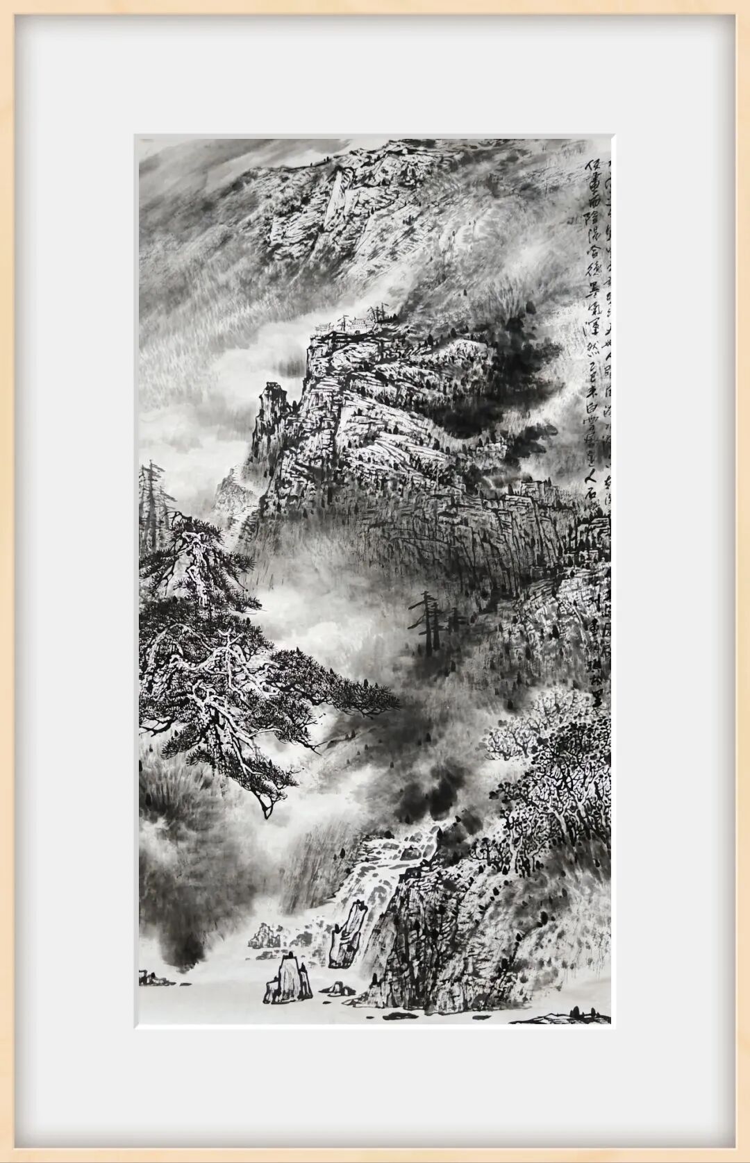 邢亚洲的山水画从传统而入,自造化而出,重心灵之描写,贯穿着“外师造化,中得心源”的艺朮体验,再现了石涛所追求的“纵横吞吐,山川之节奏也;阴阳浓淡,山川之凝神也;水云聚散,山川之联属也;蹲跳向背,山川之行藏也”艺术理念。他在形式中求构成的完美,写生处积累生活的感受,探索中找寻自然的规律,研究水墨色彩的表现形式、开拓新的技法语言,以此表现千变万化的大自然之美。那形态、那韵律充满着生机和活力,奔涌着滚滚的生命激情。他把水墨变成激越澎湃的如歌的行板,似乎总有一种期待、一种畅怀的逍遥,可以说山水画艺术是邢亚洲的情怀所系。邢亚洲山水画的丰富性和生动性都流露出他对大自然以及人生情思的深情表达。他的作品中雄强的峰峦,隐约的山居,静泊的江舟,取攫于太行山之精髓并与之融为一体,一种略带疏野狂放的美感由然而生。他以其雄浑苍劲的笔墨、鲜活灵动的意境逐步形成其独特的艺术风格,既体现传统的笔墨技法又有创新和突破。