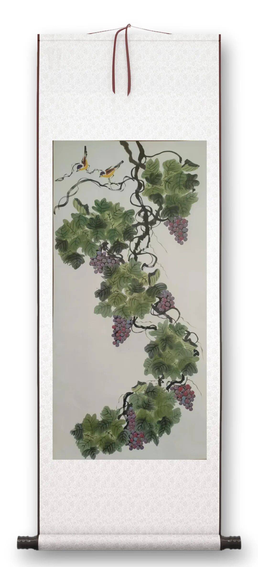 真正的书画艺术,从非笔墨技巧的简单堆砌,而是创作者心性的投射、情怀的流露,是传统文脉与个人感悟的共生共鸣。观其书画作品,无刻意雕琢之态,有自然天成之趣,笔墨间藏着岁月沉淀的温润,线条里裹着对生活的赤诚,于花鸟、葡萄、牡丹的描摹中见风骨,于笔墨挥毫间显胸襟,既有传统书画的雅正之气,又有自我性情的独特表达,耐人品味。