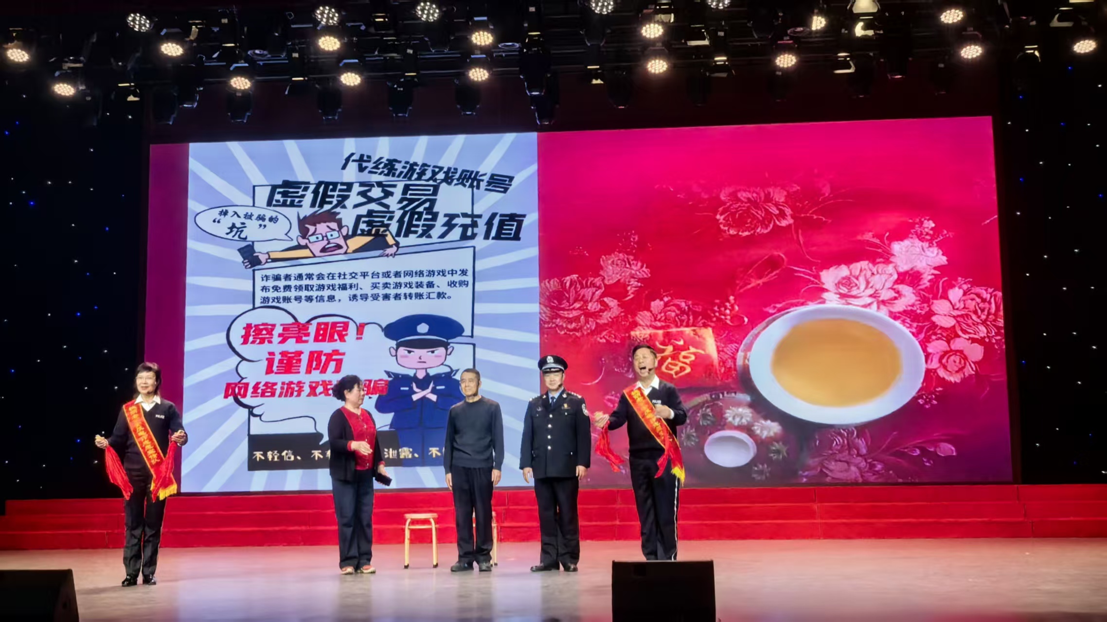 节目单上,严肃与活泼交织,传统与现代并肩。群口快板情景剧《我把电信诈骗来揭穿》,题材极新,形式极旧。几位老同志精神矍铄,舌灿莲花,将防骗知识编成代入感很强的情景剧,鞭挞时弊,寓情于景,寓教于乐,惟妙惟肖。这场景令人莞尔:你看,他们何曾真正与时代脱节?他们以自己最熟稔的“旧瓶”,盛装着关切当下的“新酒”,人民警察为人民——那份融入血脉的家国情怀与生活智慧,在此刻化作了守护人民财产安全的满满正能量。