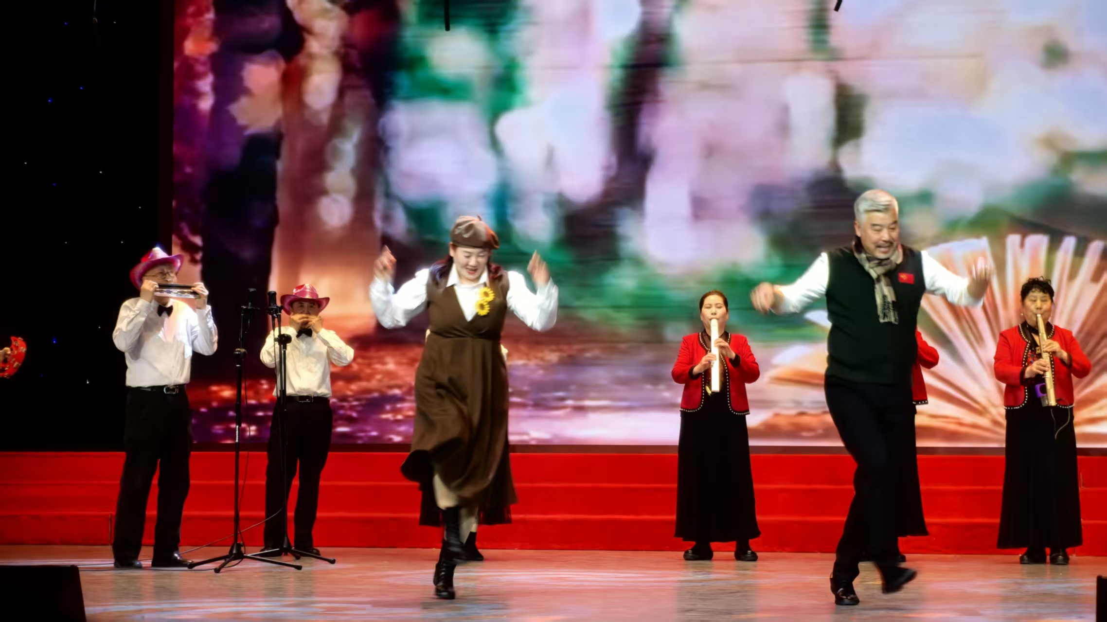 随后是乐器合奏《光阴的故事》。旋律自然是熟悉的,但当它被西方乐器口琴和东方乐器巴乌重新诠释时,竟生出别样的意蕴。西洋乐版本里的青春怅惘,在此处被转化了,成了一种更开阔的、带有集体记忆温度的叙事。光阴的故事,由这群与光阴交手了大半生的人来演绎,每个音符都仿佛浸透了真实的汗与梦,沉甸甸的,有了重量。尤其是那沙锤与红色铃鼓的清脆节拍,沙沙叮叮,说不清是慨叹,还是释然,却直直地钻进人心窝里去。