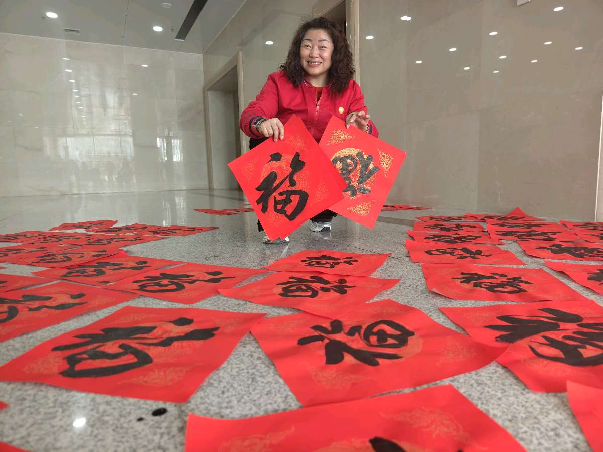 职工和家属们静静围拢,目光随着笔尖流转,不时发出轻声赞叹。拿到春联的人手捧墨迹未干的红纸,笑意从眼角眉梢流淌出来。冬日阳光下,一幅幅红底黑字的春联显得格外鲜艳,空气中墨香与浆糊清香交织,伴随着欢声笑语,提前浸染出浓郁的年节氛围。
