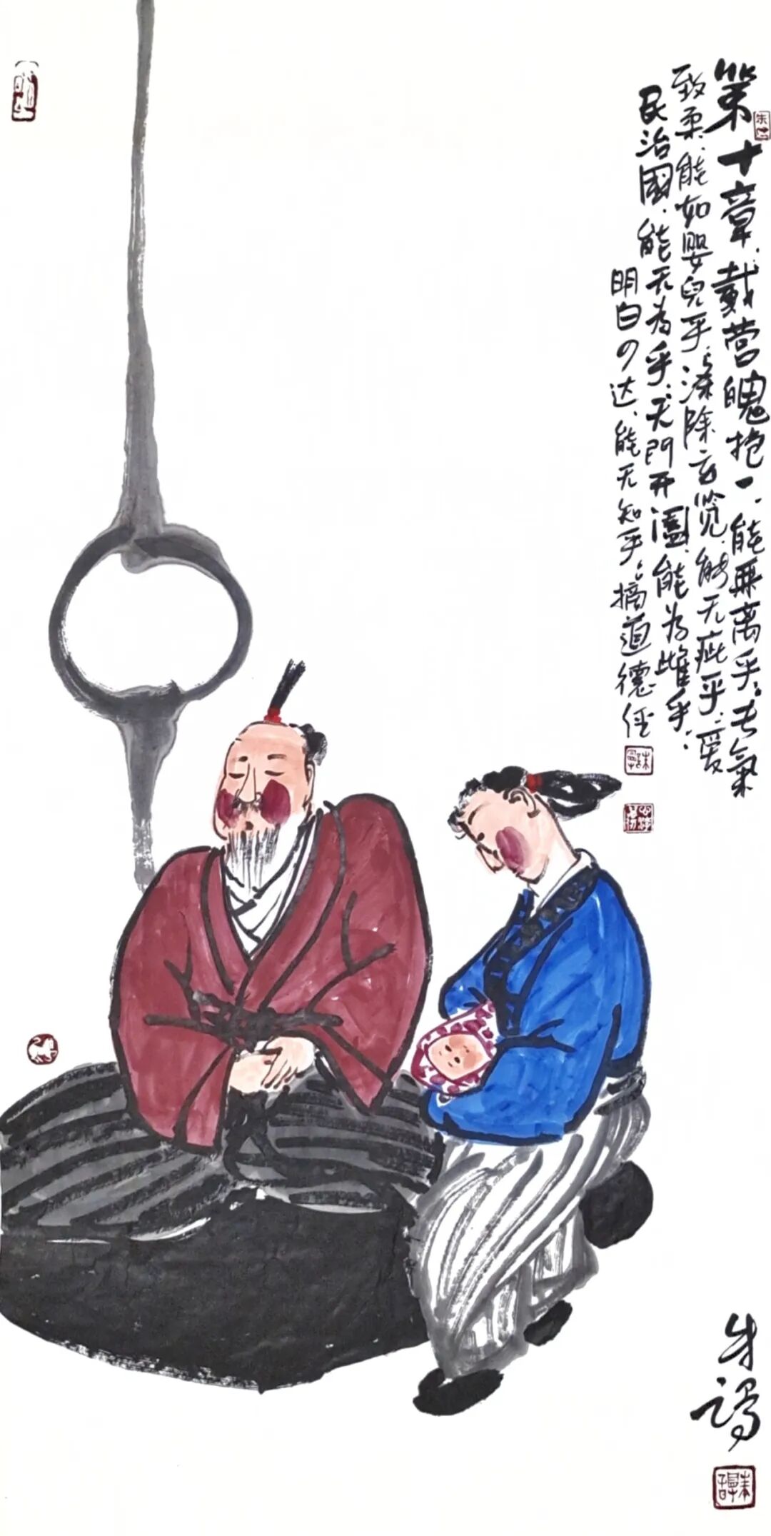 2. 《归朴》:表现“复归于婴儿”(第二十八章),用圆润柔软的笔触画蜷缩的物质形态,背景是混沌的墨团,象征返璞归真。