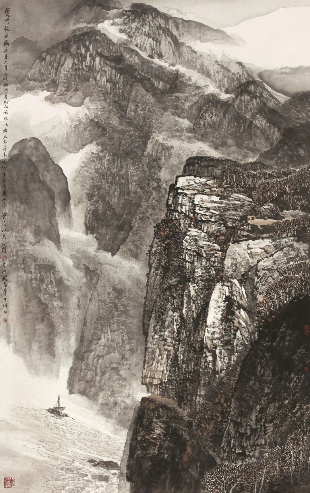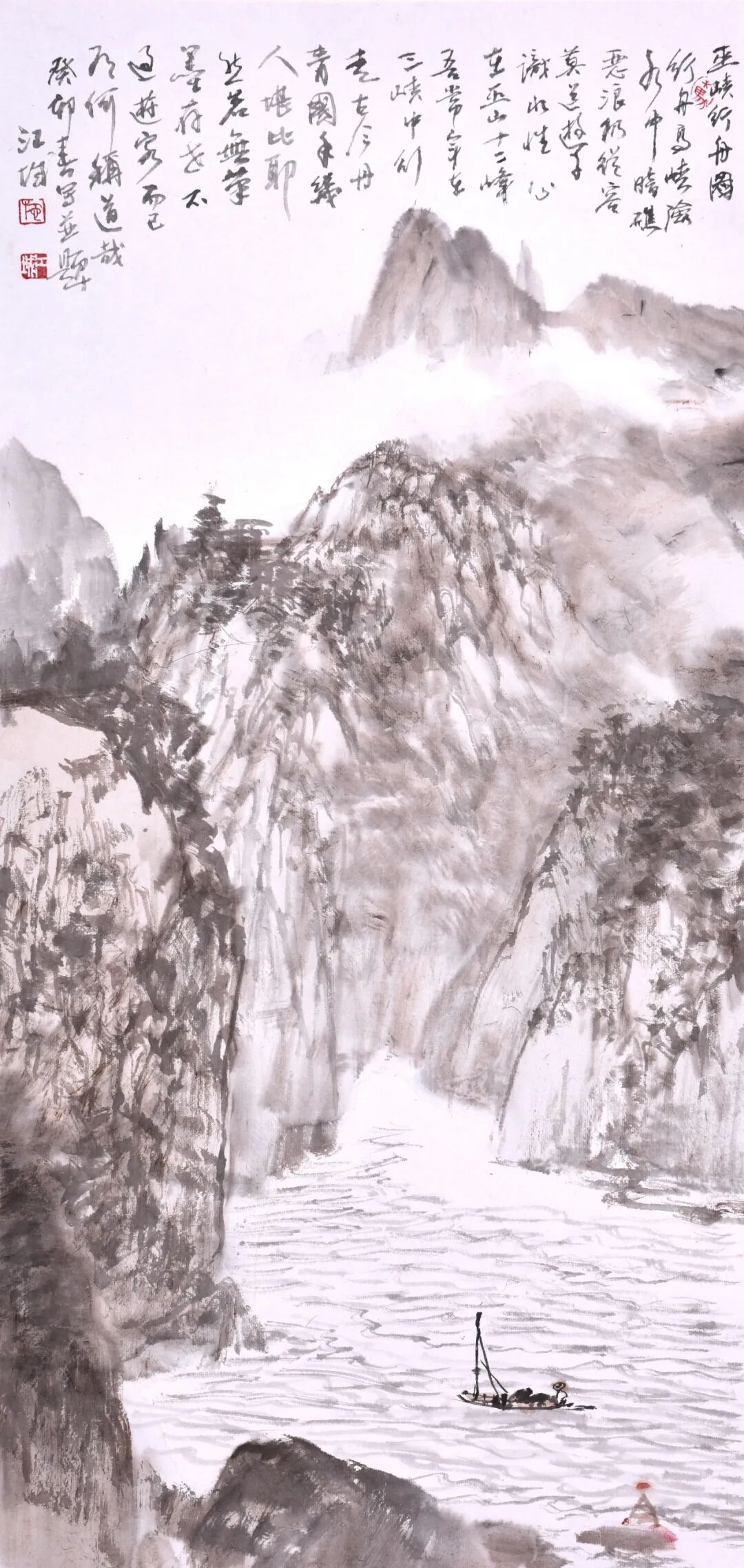 施江城施江城是当代中国著名画家,作品多以长江山水为题材,也擅长写意人物、花鸟,在书法诗词上也有相当造诣。其作品曾参加国内外许多重要美术展览,并为中国国家博物馆、中国美术馆、中国国家版本馆、中国共产党历史展览馆、国家体育场(鸟巢)、中南海、文化部、外交部、中宣部、湖北省政府及海外多家重要美术机构收藏。曾应联合国新闻署邀请在纽约联合国总部举办“长江颂——施江城中国画作品联合国特展”,并应邀参加法国“卢浮宫国际美术展。”2002年 《三峡史诗》(合作主笔)6280×220cm 中国美术馆收藏2003年 《峡江烟云图》500×193cm 中宣部收藏2003年 《峡江放舟图》690×155cm 京西宾馆收藏2004年 《云水三千图》1470×180cm 佛光山收藏2008年 《云峰会弈图》550×250cm 国家体育场(鸟巢)收藏2009年 《极目楚天舒》1000×600cm 湖北省政府收藏2009年 《高峡平湖图》(合作)650×300cm 国家重大历史题材美术创作工程2011年 《高峡平湖图》(合作)650×300cm 中国国家博物馆收藏2015年《山高水长楚天阔》1100×350cm 湖北省文化厅收藏2013年 《黄河万里图》(合作主笔)22000×145cm2010年《京沪高铁揽胜图》(合作主笔)8000×145cm2017年 《长江万里图》(合作主笔)20000×150cm2012年 在湖北美术馆举办“大江画魂——施江城长江画展”2014年 在美国纽约联合国总部举办“长江颂——施江城中国画作品联合国特展”2015年 在湖北省图书馆举办“画说长江——施江城画展”2015年 应邀在长江讲坛举办“画说长江”主题讲座2019年 《巍巍长城》(合作)1600×1000cm 第七届世界军运会(武汉)2021年 《高峡平湖图》(合作主笔)650×300cm 中国共产党历史展览馆收藏中央广播电视总台、中国国家博物馆、中央美术学院联合制作的《美术经典中的党史》百集特别节目隆重推介2022年 《大江浩荡 源远流长》530×240cm 中国国家版本馆收藏