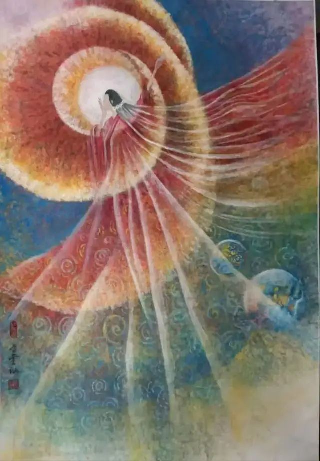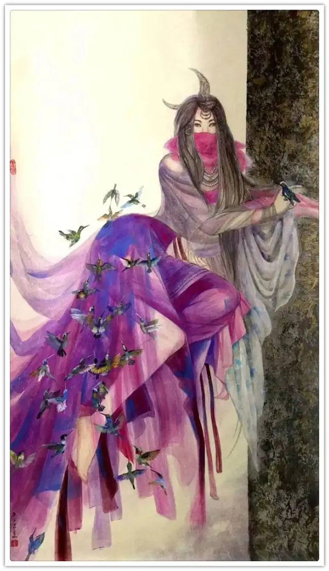 - 材质与技法:画面运用了岩彩或重彩的肌理质感,结合细腻的晕染与厚重的底色,既有传统工笔的精致,又具备现代艺术的视觉张力。