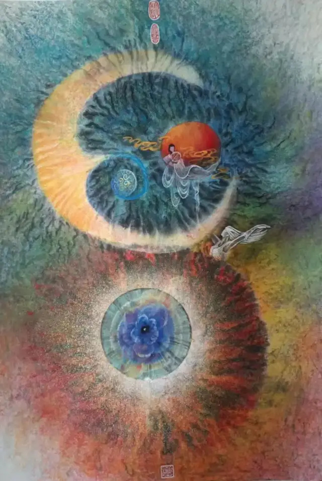 整体画面将东方哲学中的“观心”与宇宙视觉符号结合,表达了“心即宇宙、一念生灭”的禅意,也暗含着对生命本源的追问。
