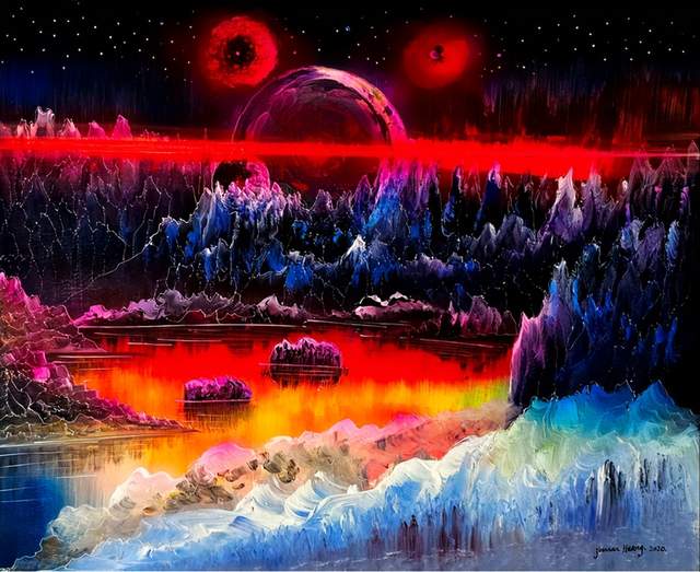 “宇宙系列”的开创性:以宏观宇宙视角为切入点,将东方哲学中的“天人合一”思想与现代天文学认知相融合,形成独特的宇宙美学表达