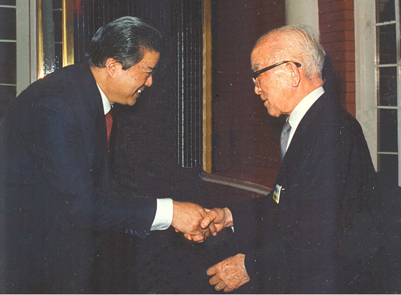 1989年5月19日蒋奎生会见著名日本友好人士冈崎嘉平太,欢迎他第100次访华