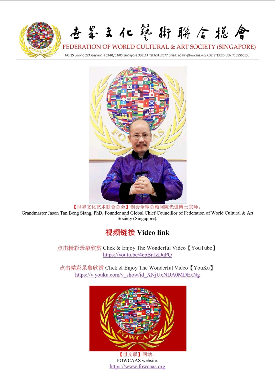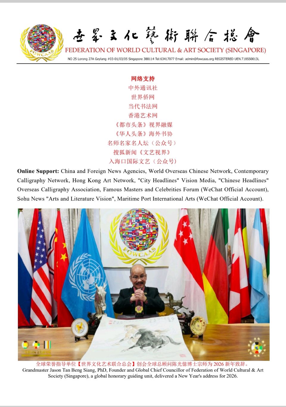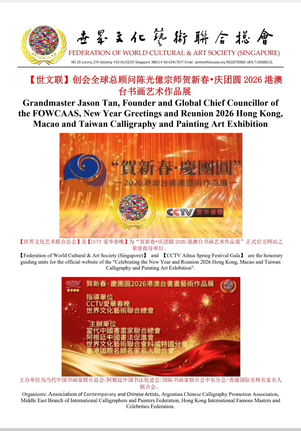 【世文联】创会全球总顾问陈光億宗师贺新春•庆团圆 2026 港澳台书画艺术作品展