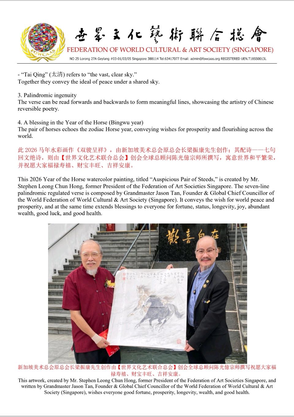 首页   \   文学  \  【世文联】创会全球总顾问陈光億宗师贺新春•庆团圆 2026 港澳台书画艺术作品展