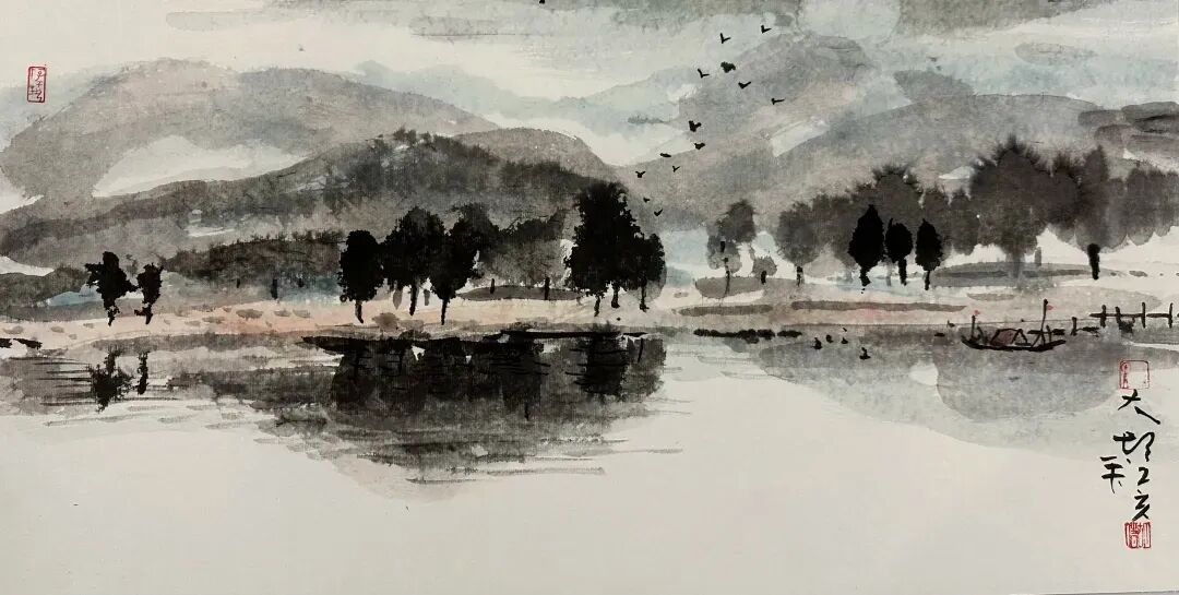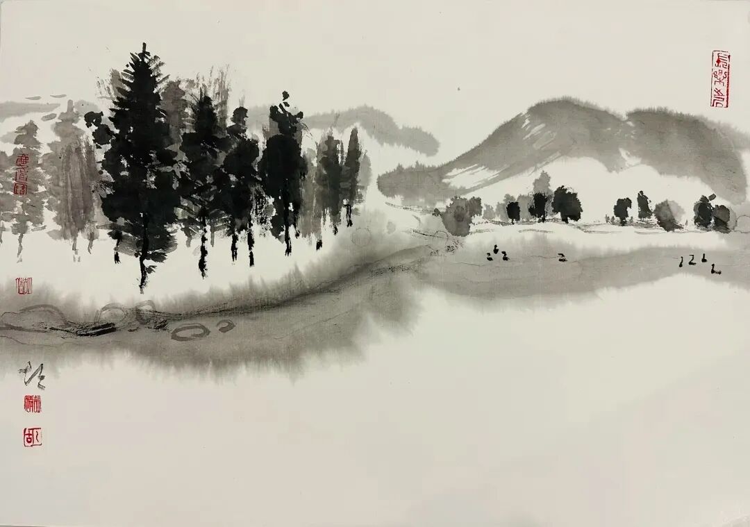 他用最传统的水墨语言,画的是山水,写的是人生。那些看似简单的线条与墨色,藏着对生活的热爱,对美好的坚守,对前路的期许。当我们凝视画作,仿佛能抛开尘世的浮躁,回到最初的自己——一切都还未开始,却又充满着无限可能,就像他笔下的山水,虽静却有生机,虽简却有力量。