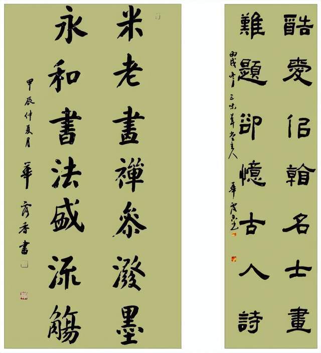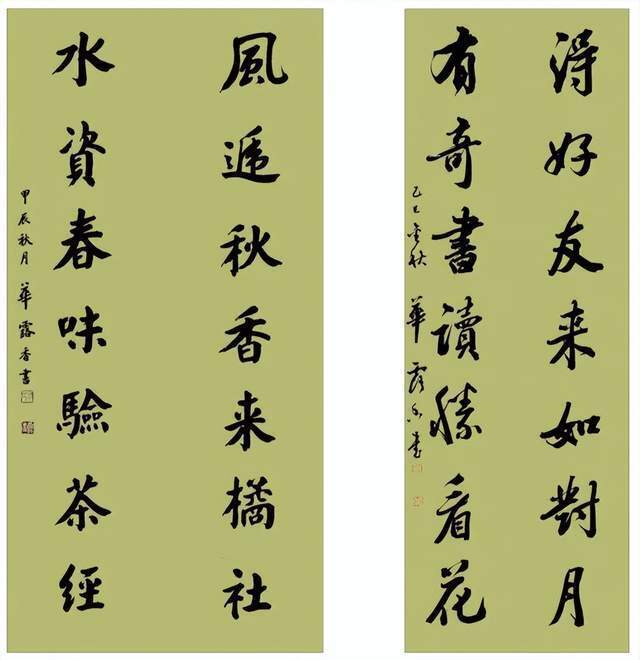 同为华派书法核心传承人的华露香,系中国书法家协会会员、天津市书协女书法家委员会主任,深耕正书与楹联书法,风格温婉而刚劲,丰富了华派书法的艺术表达。其作品入选全国第六届、第七届书法篆刻展、全国正书展、楹联展等国家级大展,《沁园春·雪》《陋室铭》等代表作被中共中央党校、人民大会堂、故宫博物院收藏,个人传略入编《中国历代书法家大辞典》《中国书法年鉴》。她长期致力于书法普及与传承,带领女性书法群体深耕创作,为华派书法薪火相传注入持续动力。