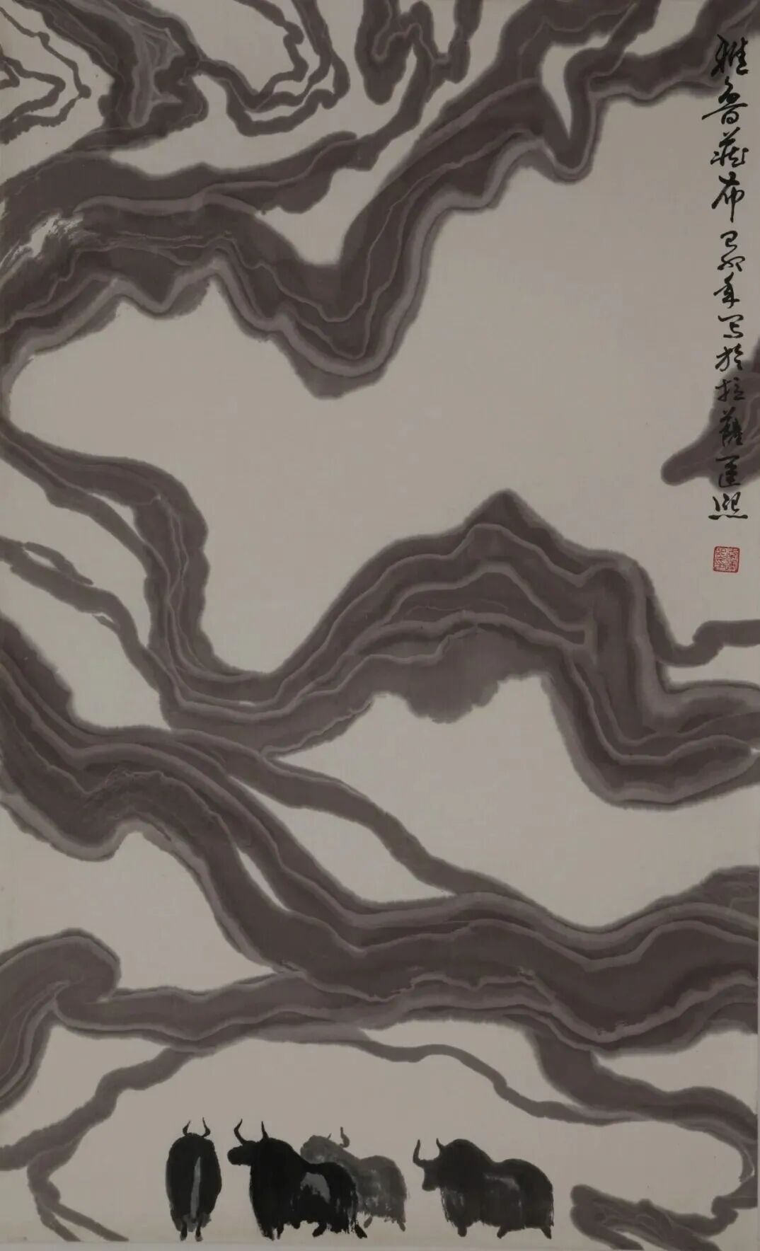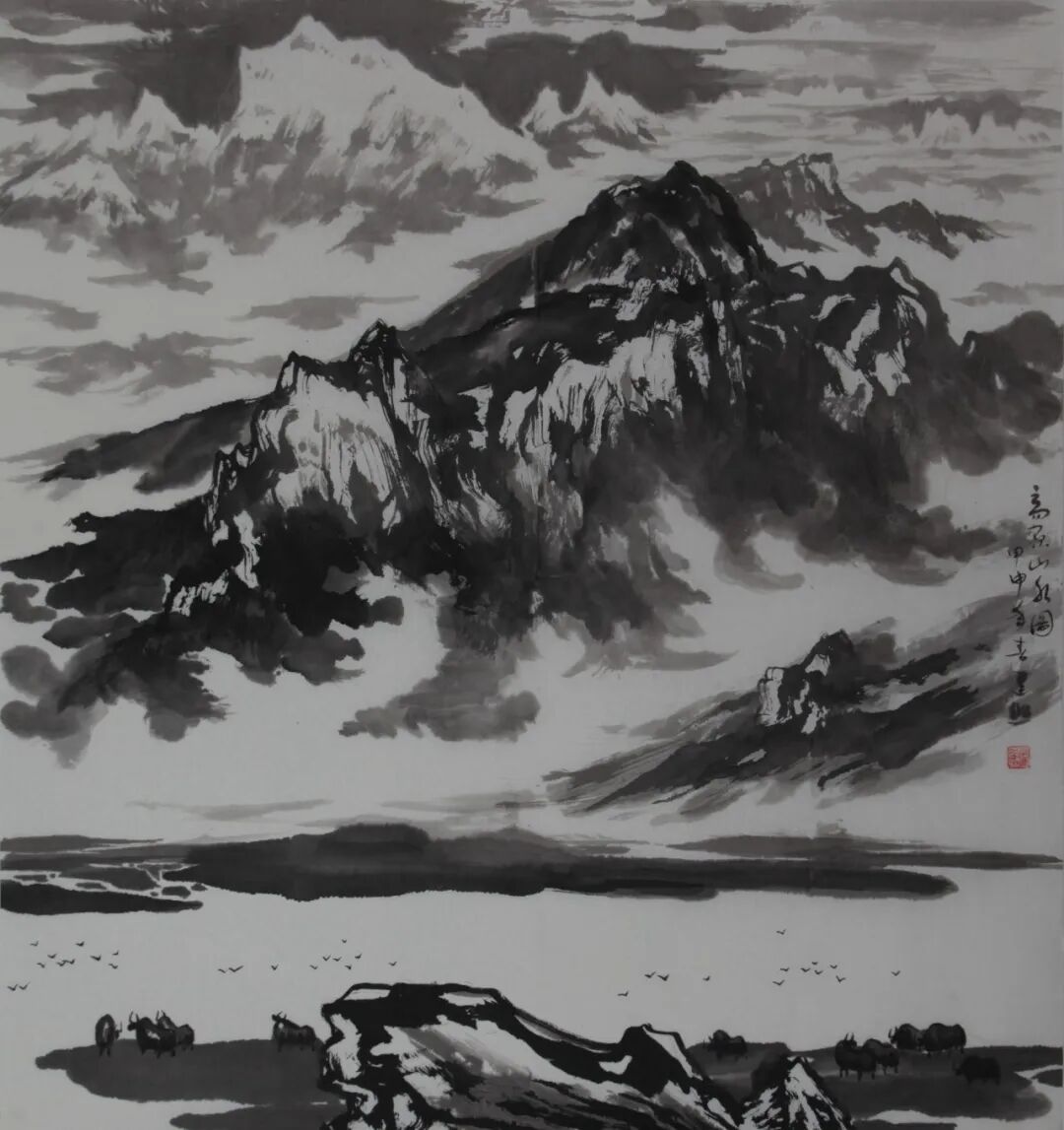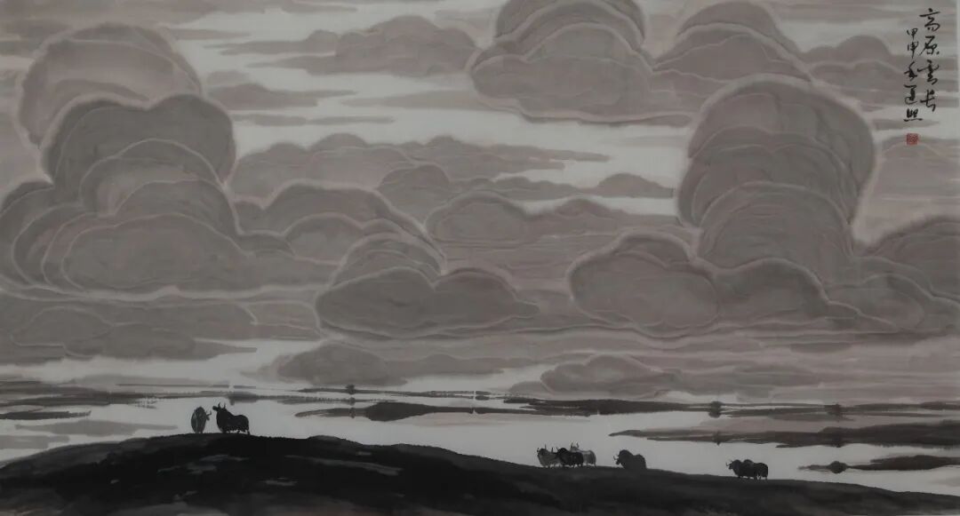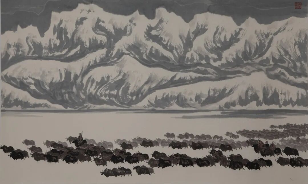 一天又一天,这道亮丽的风景深深地印在我的脑海里,牦牛成为我生活中不可缺少的一部分,在我的绘画中成为了重要的表现题材。
