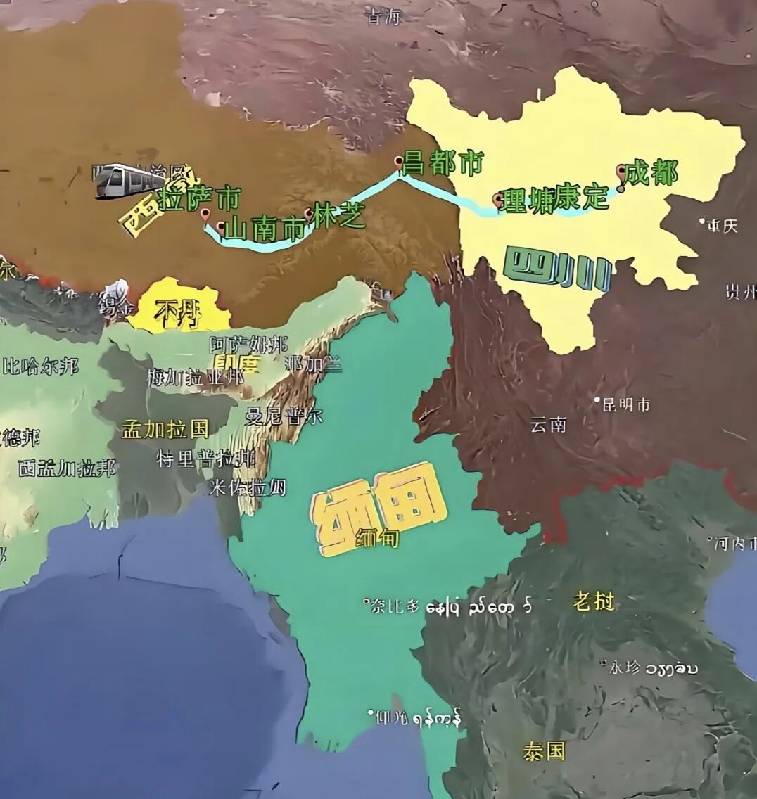 随着“一带一路”“环喜马拉雅国际经济合作带”南亚大通道建设倡议的实施,被称为“史诗级”的川藏铁路,作为我国西部大开发、向西开放等重大战略的关键支点,林芝、日喀则等边境城市可有效对接尼泊尔、不丹、印度等南亚国家,构建中国——南亚经济走廊,未来西藏有望从边疆末梢转变为面向南亚的开放前沿。