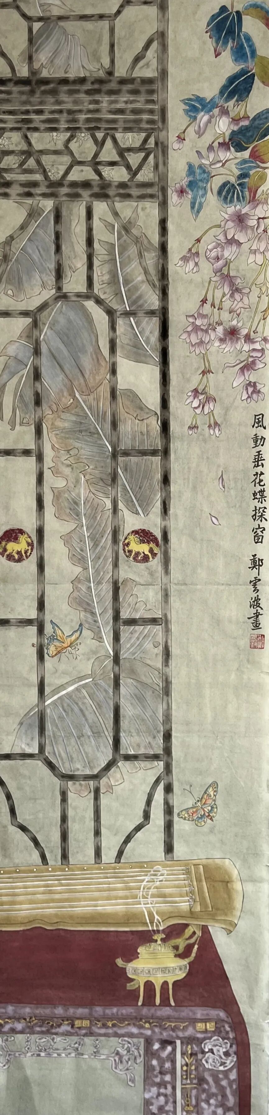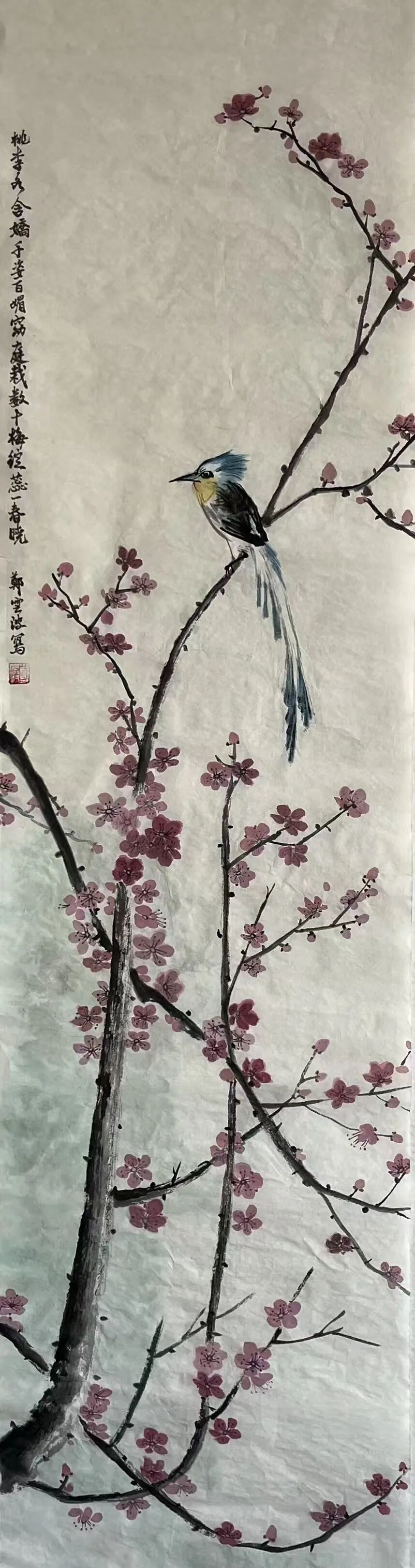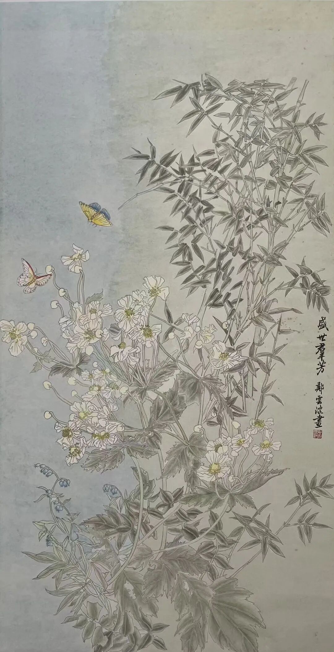 山水作品入选《美术报》、中国美院《流金岁月》、《天津书画报》;《王阳明像》入选宁波第三届中国画展;中国画《生生不息》入选第二十一届浙江省女花鸟画家作品展;作品《灼灼其华》、《盛世群芳》、《王阳明像》等多次入选宁波市女美术家协会画展;国画作品《风动垂花蝶探窗》入选2026“繁华·三月”浙江当代女画家首届作品展;入选第三届加拿大国际书画展。