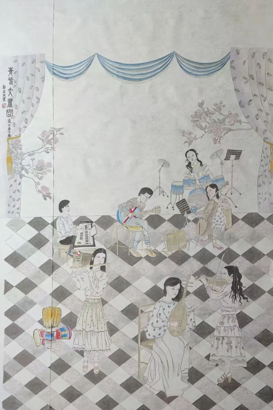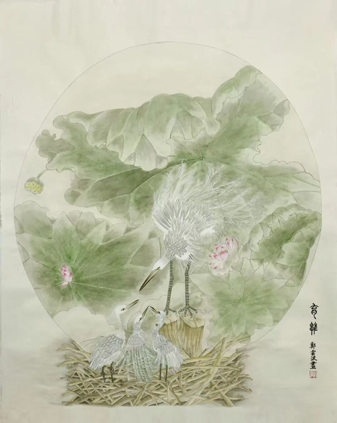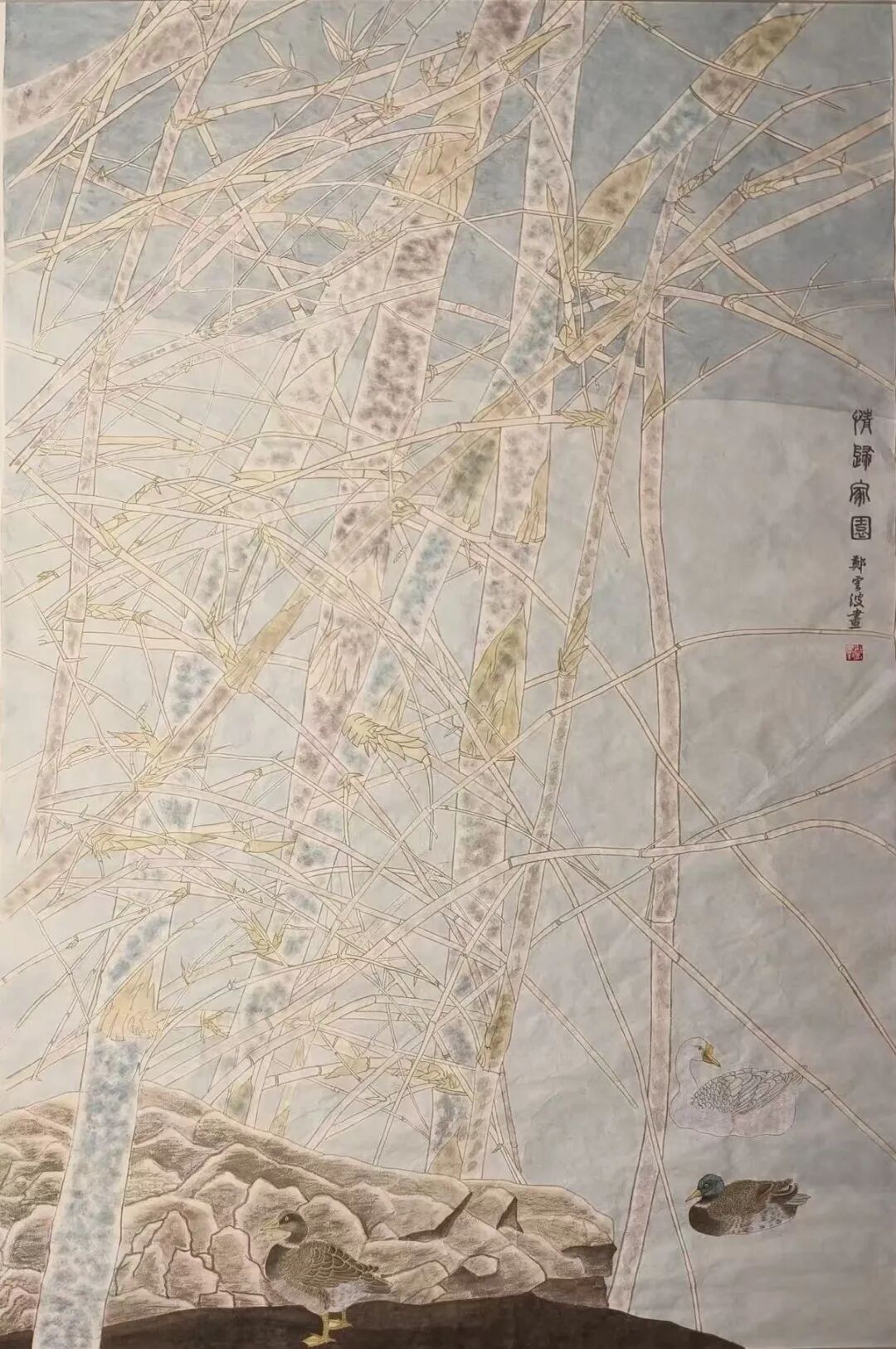 山水作品入选《美术报》、中国美院《流金岁月》、《天津书画报》;《王阳明像》入选宁波第三届中国画展;中国画《生生不息》入选第二十一届浙江省女花鸟画家作品展;作品《灼灼其华》、《盛世群芳》、《王阳明像》等多次入选宁波市女美术家协会画展;国画作品《风动垂花蝶探窗》入选2026“繁华·三月”浙江当代女画家首届作品展;入选第三届加拿大国际书画展。