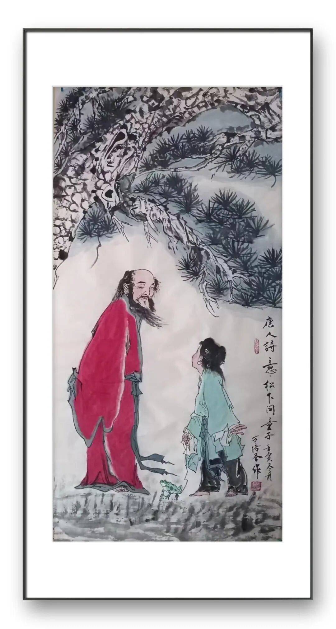 形神兼备、意蕴深远,是万培圣老师人物画的最高追求。他突破了单纯描摹人物外在形态的局限,更注重对人物内心的刻画,善于捕捉人物瞬间的神态与心境,通过微妙的眼神、嘴角的弧度乃至衣纹的褶皱,揭示人物的喜怒哀乐与精神风貌。其作品中,恣肆的笔墨、有意味的形象与自然的画面构成,共同营造出独特的艺术感染力。更难得的是,他为人低调豁达,其内敛平和的文化品格与不事张扬的艺术风貌一脉相承,让作品更具亲和力,观者在欣赏笔墨之美的同时,更能感受到一份真挚的情感共鸣。
