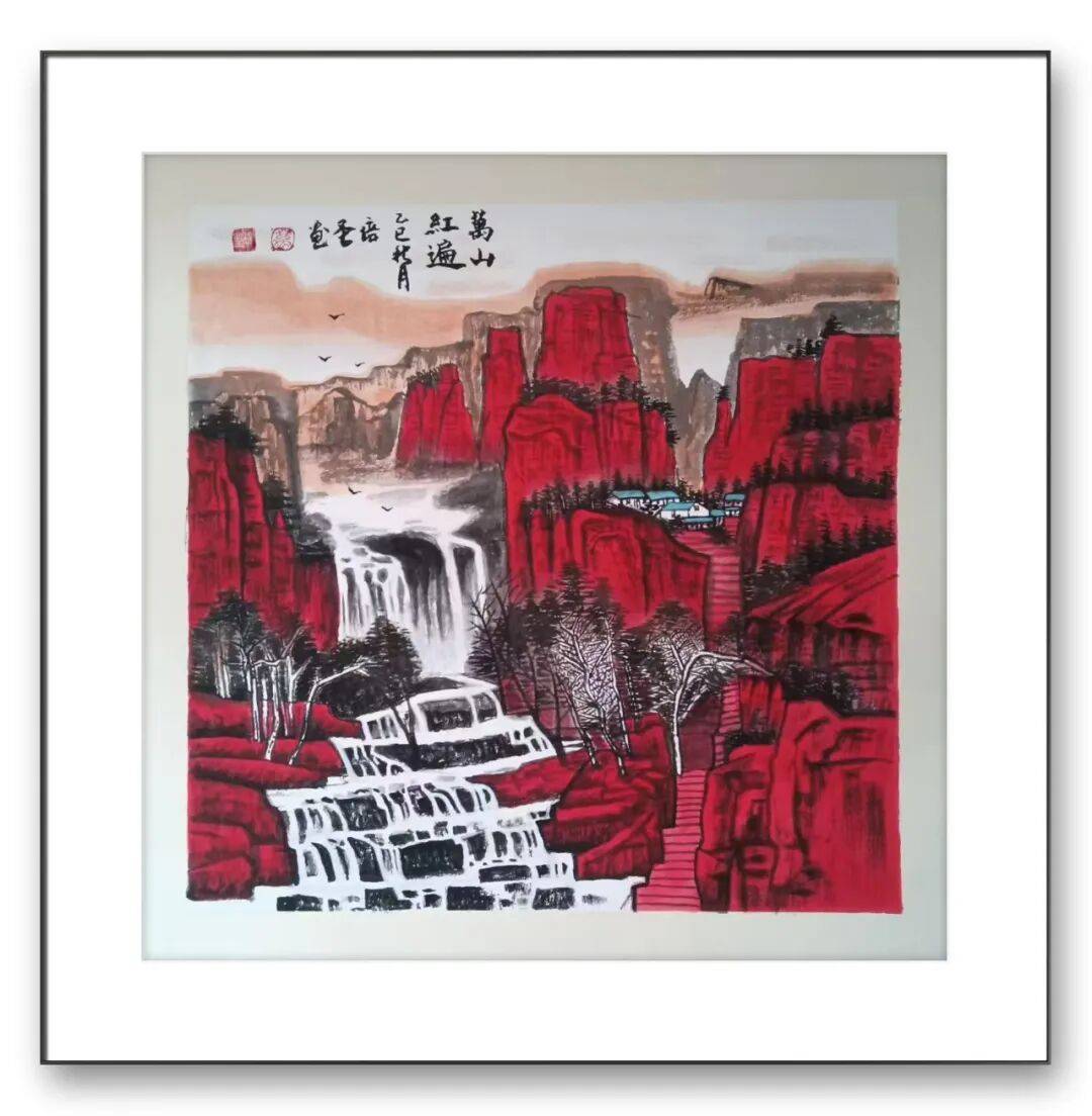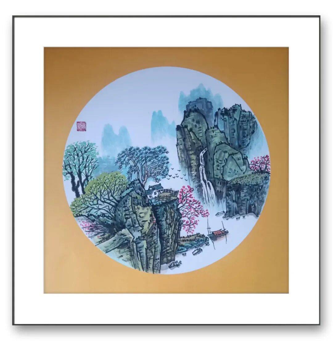 他笔下的花鸟,或含苞待放的牡丹,雍容华贵却不张扬;或翩跹起舞的蝴蝶,灵动轻盈而富有生机;或枝头鸣唱的雀鸟,神态各异而栩栩如生,每一幅作品都兼具形态之美与神韵之魂,仿佛能让人感受到自然的生机与活力。在创作过程中,他注重笔墨的运用与色彩的搭配,以墨塑形,以色润韵,墨色与色彩相互映衬,虚实相生,既展现了花鸟的自然本真,又融入了自己对生活的热爱、对家风的感悟,让每一幅作品都充满温度与灵气。在山水创作上,他借鉴传统山水画的构图理念与笔墨技法,兼收南北山水之所长,既有北方山水的雄浑厚重,又有南方山水的清雅灵动,将山水的苍茫与灵秀完美融合。