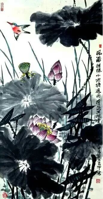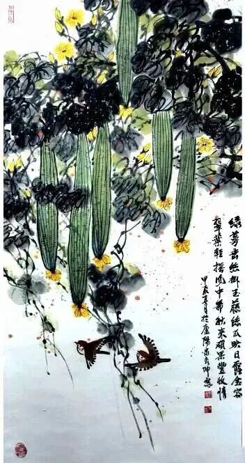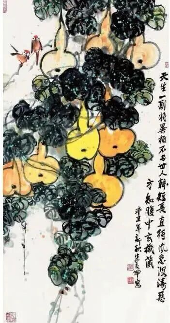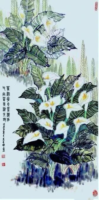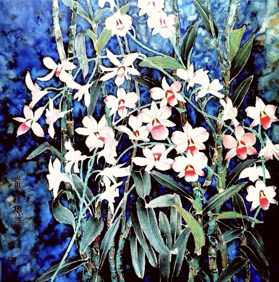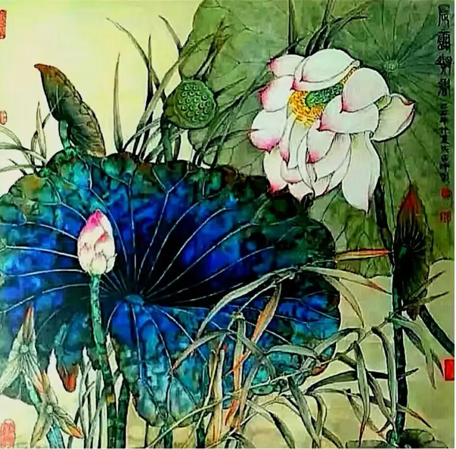 1. 北派根基: - 求学中央工艺美院时,受张仃、吴冠中“大美术观”影响,兼得京派工笔的严谨造型与装饰构成。 - 临习宋人巨幅花鸟,锤炼出“笔笔有出处、层层见厚度”的北方雄健格局。