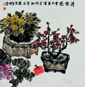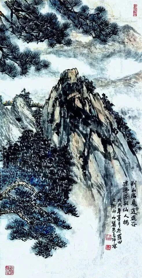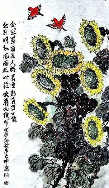 2. 南派滋养: - 皖南写生十年,浸淫新安江烟雨、黄山云海,对“虚”“淡”“韵”的南方文人气质心摹手追。 - 研习虚谷、任伯年海派没骨,吸收水色淋漓、一气呵成的书写性。