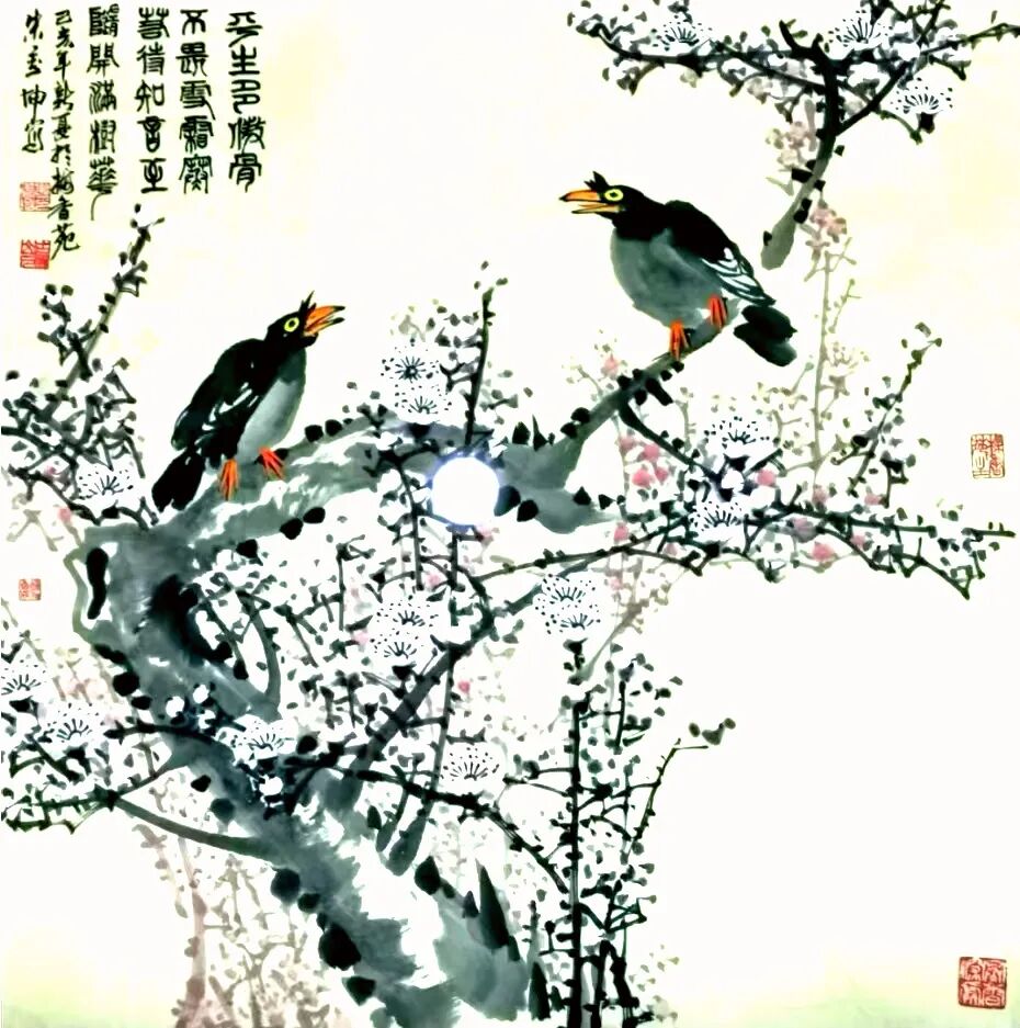 “南北融合,雄秀兼具”是朱秀坤花鸟画最醒目的标签,也是其艺术语言的核心密码。具体展开,可从四个维度体会: