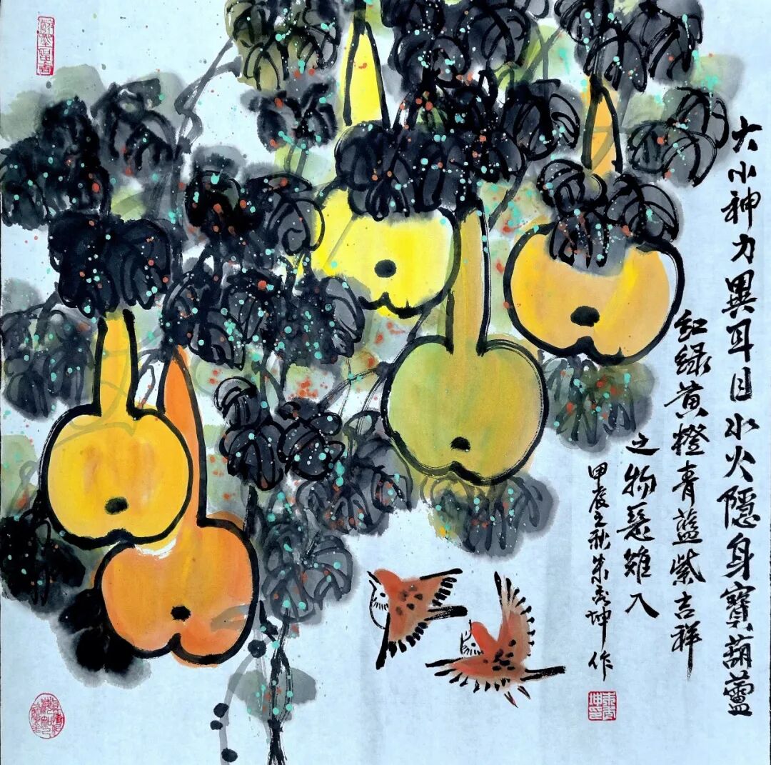 因此,朱秀坤的“南北融合”不是简单拼贴,而是让“雄”与“秀”在同一根视觉链条上彼此转化:以北方之“骨”撑开局面,以南方之“韵”化骨为气;以北方之“色”点燃情绪,以南方之“墨”收归平淡。一收一放之间,遂成其“艳而不俗、厚而不浊、刚而不露、秀而不弱”的独特标识,也使其作品在中国当代花鸟画坛独立风标。