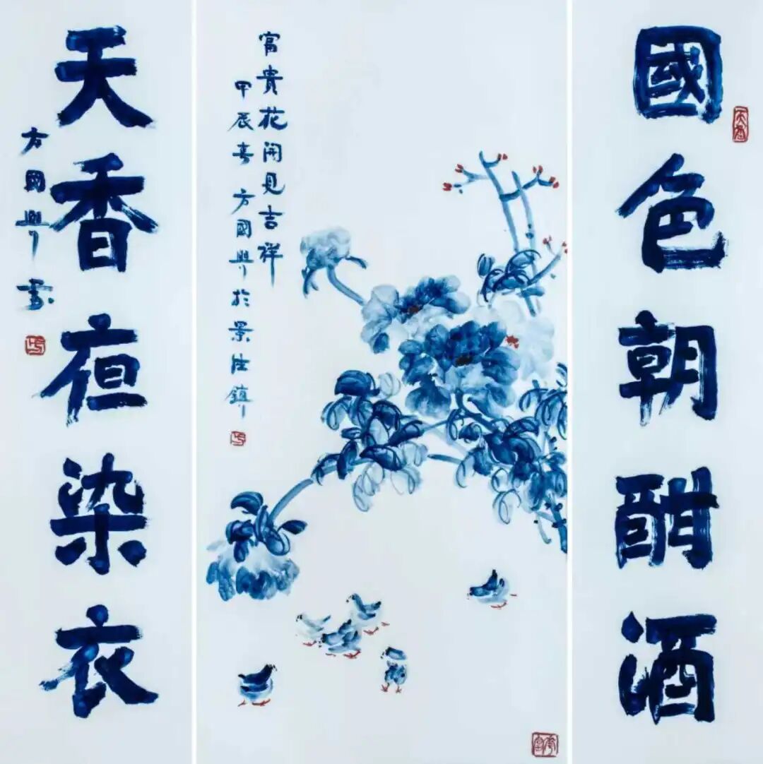 术院校教学范本精选-方国兴》等 20 多种。先后在美国、新加坡、马来西亚、阿联酋及国内多地举办书画瓷个展 30 余次。曾为翰园碑林、诗圣碑林等 60 余处刻石,为金山寺、龙泉寺等 40 余座海内外寺庙题写匾额楹联。中央电视台【收藏天下】为其拍摄专题片《融古自成一家,书画瓷艺三绝——方国兴》。南城县人民政府、抚州市文昌里和南昌青山湖先后设立三座“方国兴艺术馆”。
