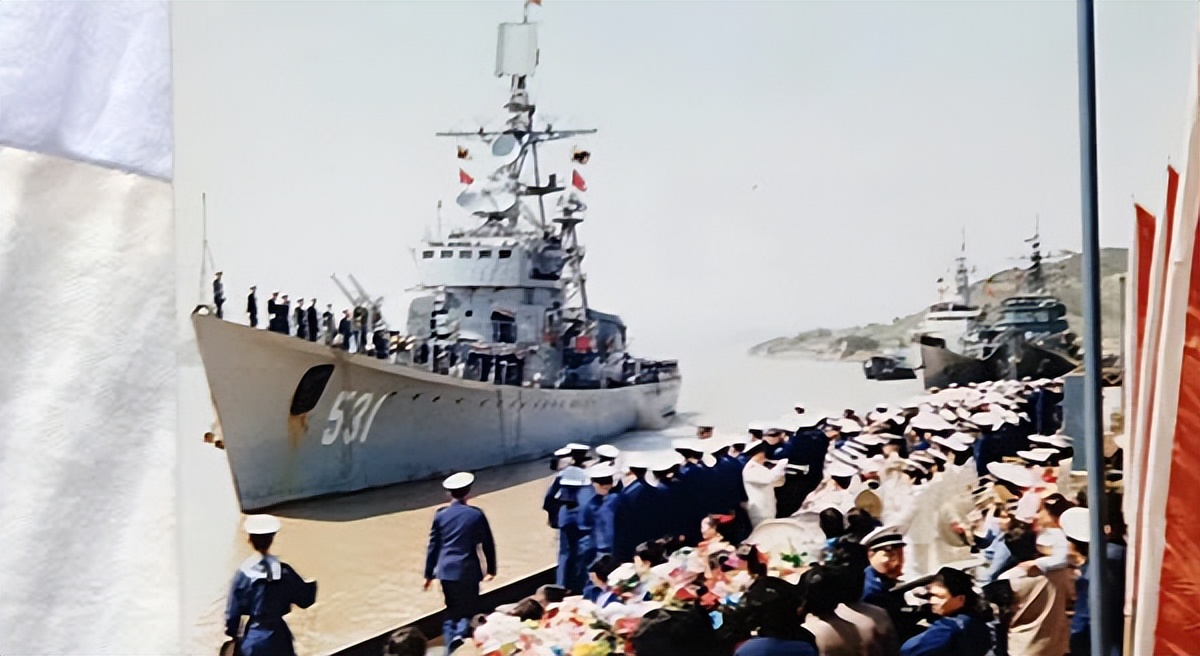 图三:这是531战舰完成南海南沙群岛海域巡逻,胜利完成赤瓜礁海战作战任务后,返回东海舰队驱逐舰第六支队驻地,受到隆重欢迎的热烈场景。