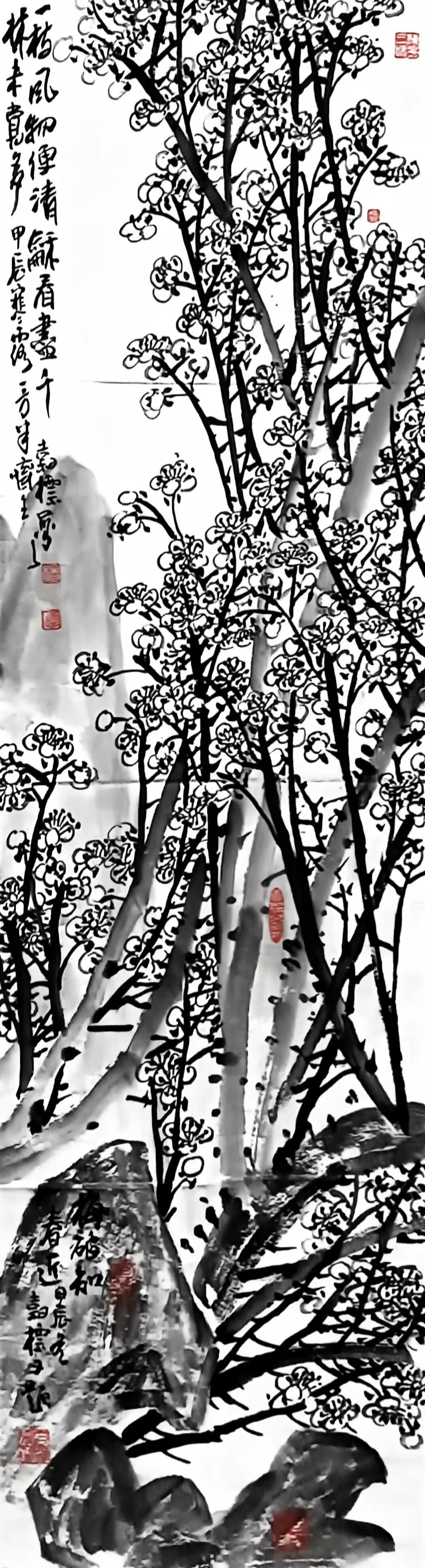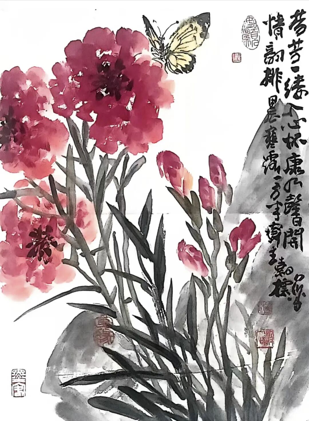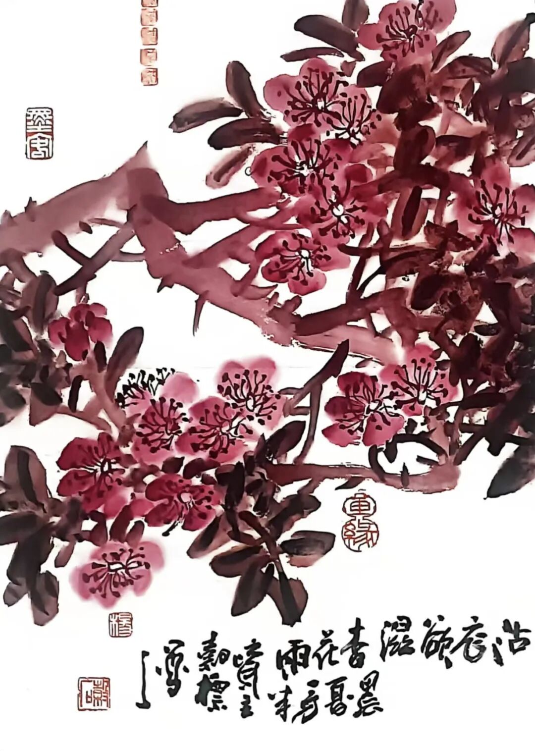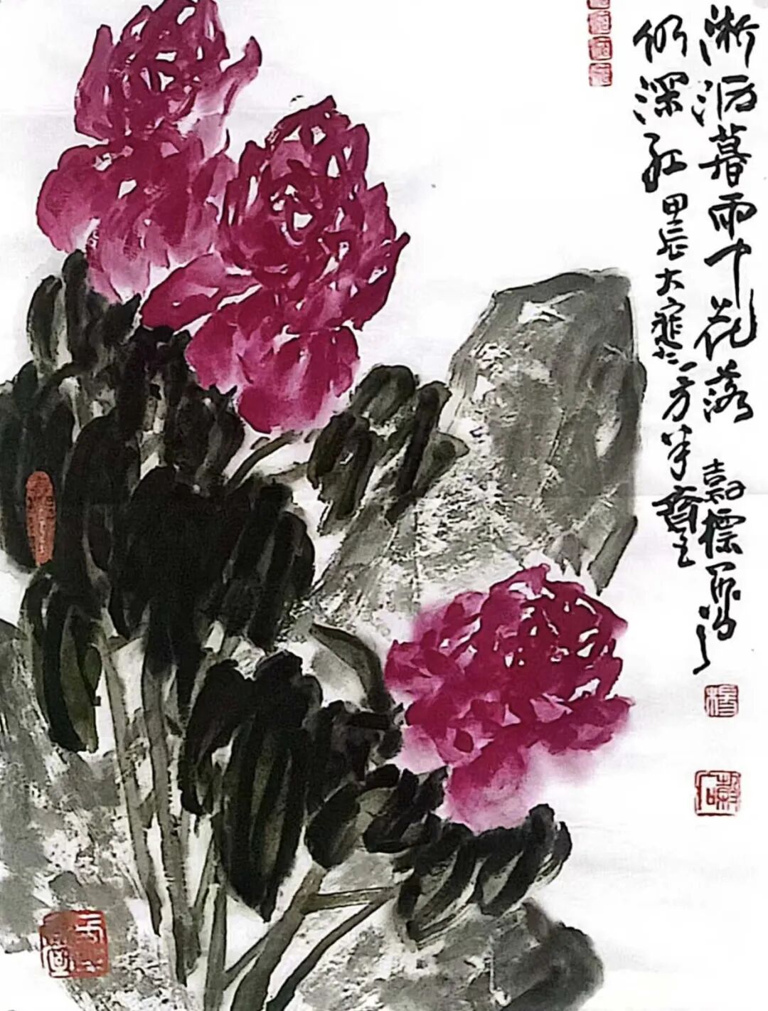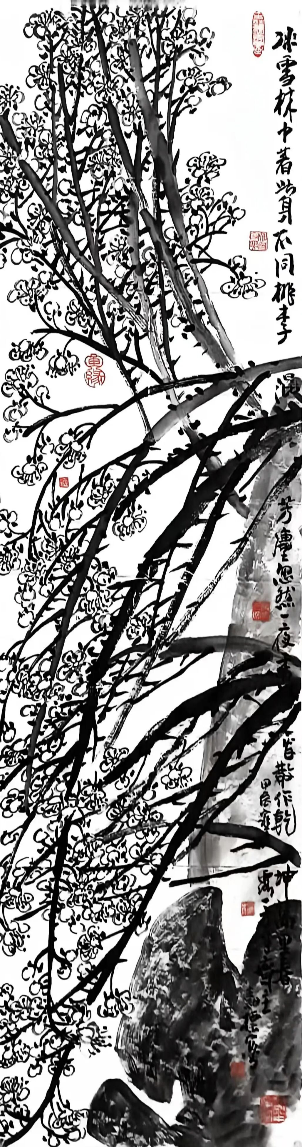 传统的中国画家喜欢画梅兰竹菊四君子或者画松竹梅岁寒三友。当然,中国花鸟画家并不只是画这些题材,潘天寿先生曾说:“创新不能单看,我以为从内容到形式,从题材到技法,从风格到意趣都要创新。”花鸟画创新的地盘大可开拓,花鸟山水画可在同一个画面上交融。潘老的“纪写雁荡山花”“小龙湫一角”诸多名作就是他在花鸟画与山水画相结合方面的尝试。