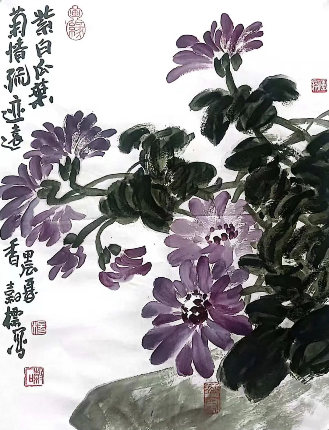代表作“荷塘初雪图”、“花魂”分别参加全国八届美展及省美展,“花魂”已编入《杭州美术50周年》大型美术史册。“舞雪图”获全国“新联杯”美术大赛金奖,广获好评。并被北京画院收藏,“涌情”获日中“人与自然”美术大赛优秀奖。“觅新”获全国六大古都美展优秀杰作奖。“故乡明月”、“万岩山中攀凌霄”、“梅韵”、“田边拾趣”分别参加省首届、历届花鸟画展及百梅画展。25米长卷“梅花鸲鹆图”入编《当代书画家鉴赏》一书。