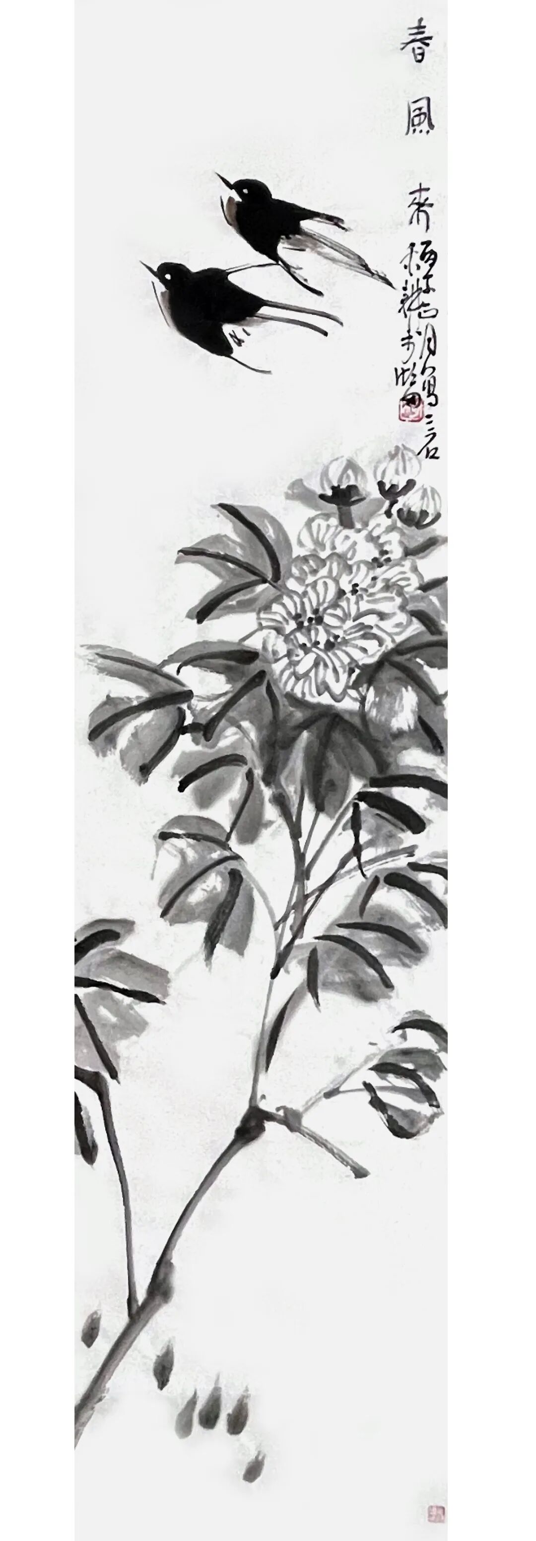 鸣鸟图 70cmX34cm