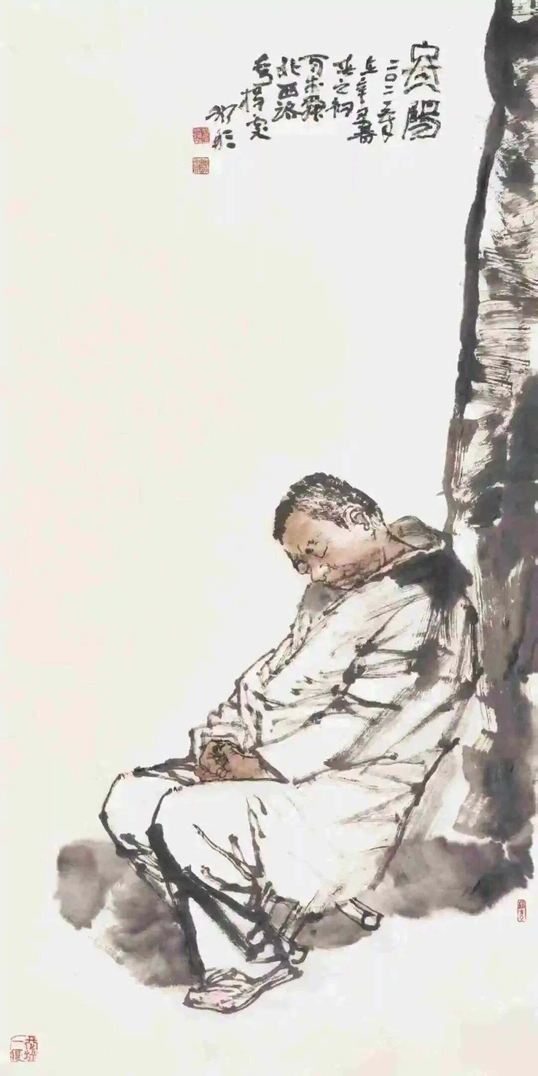 近四十年以来,当代的中国人物画在各种展事与大奖赛的规范与召引中,更加强化了题材与视觉形式的重要意义。应当说在硕果仅存的同时也出现了图解生活、精神匮乏的一种倾向,具体而言,这些作品不是出于画家对生活的感喟,而更多的是来自于相互的模仿。作品灵魂不见的同时,也恰好是中国画笔墨趣味消失的端口。这或许是当代中国人物画不得不让人忧心忡忡的事实所在。在此,我倒是从山东画家任敬彬的作品中看到了甚嚣尘上里的一股清流,从精神的流露处到笔墨的修养,都可谓是“古不乖时,今不同弊”的典范。因此,笔者不揣谫陋,就其作品,略述心得一二,并以此与画家及同道交流共勉。