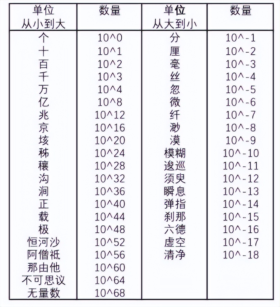 现在更方便,上网一查,果然:对于“万”以上的大数,中国古代典籍如《数术记遗》和《孙子算经》等记载了“亿、兆、京、垓、秭、穰、沟、涧、正、载”等一系列单位,大到不可思议小到虚空清净,非常系统全面。与西方的千进不同,我们采用万进体系,即后一单位为前一单位的一万(10^4)倍。该体系在清代《数理精蕴》中得到系统阐述,成为现代汉语部分地区大数命名法的基础。