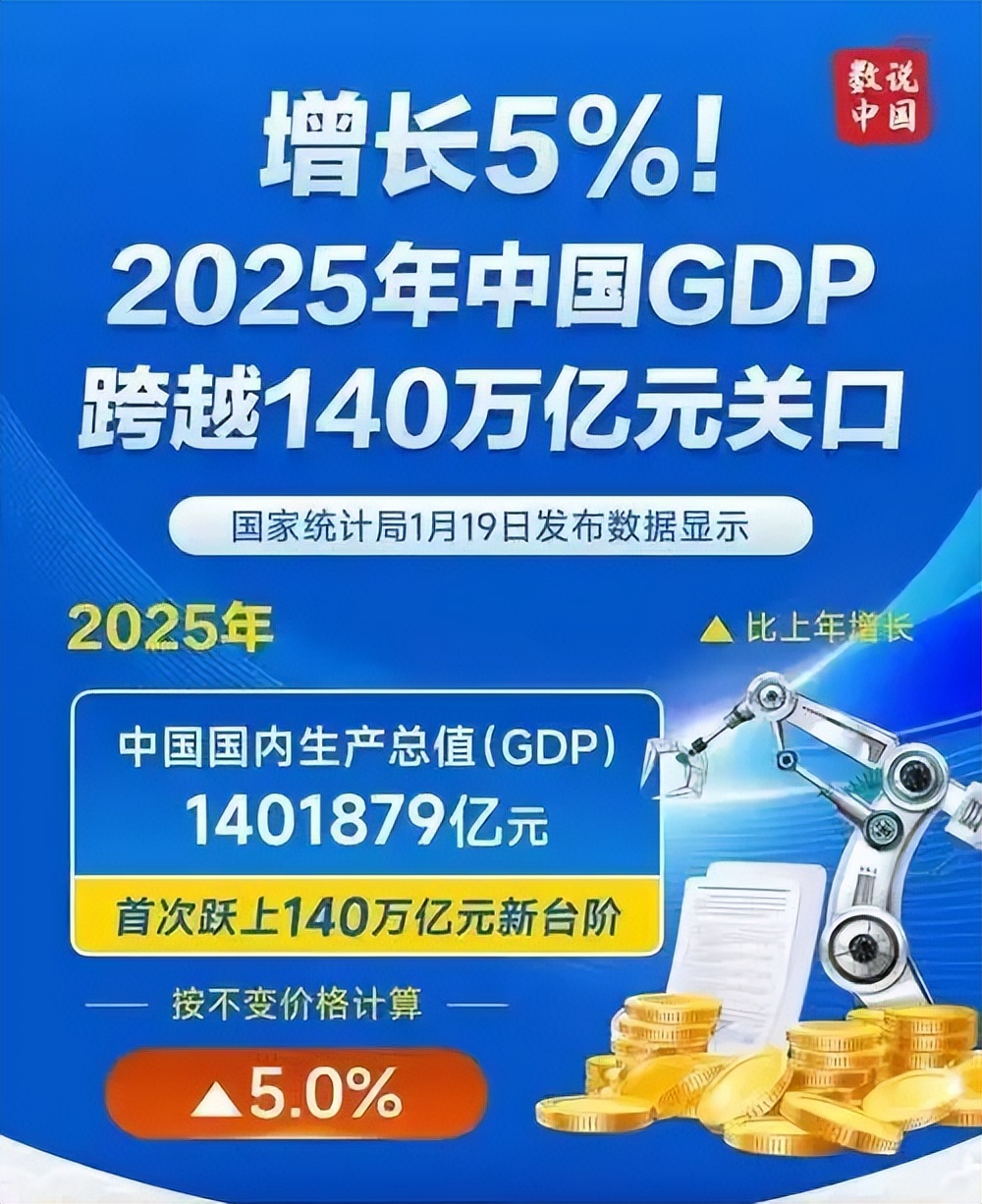 2025年我国GDP增长5%,总量达到140.19万亿元。在全球经济不景气的环境中“风景这边独好”,令人欣慰振奋。