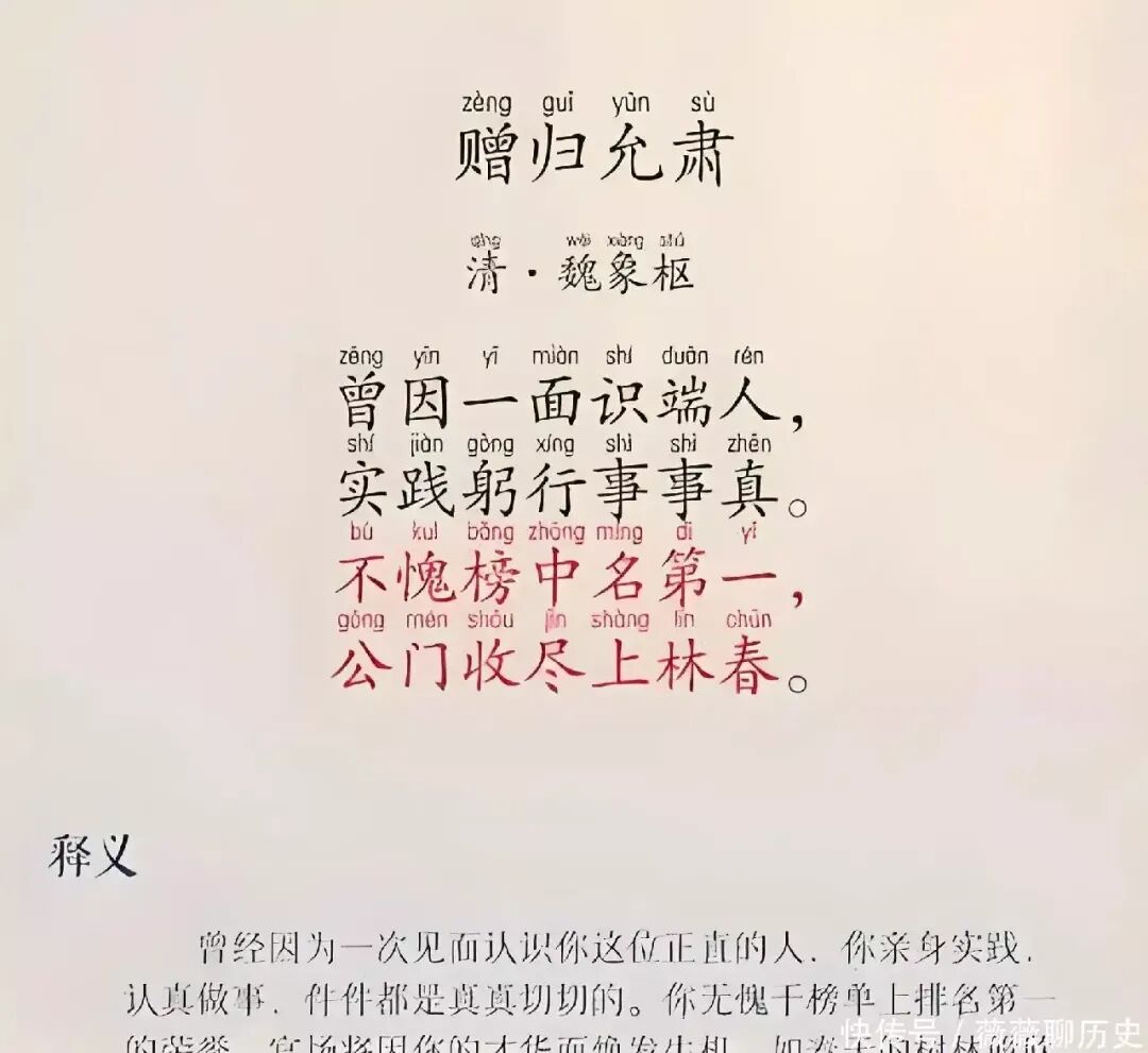 归孝仪又是何人?经查,归孝仪,即归允肃,字孝仪,号惺崖,常熟人。生于崇祯十五年(1642),卒于康熙二十八年(1689)。他是康熙十八年(1679年)状元,授修撰,历官日讲起居注、中允、侍讲、侍读、侍讲学士、侍读学士、少詹事,曾主顺天乡试。著有《归宫詹集》《惺厓文集》。
