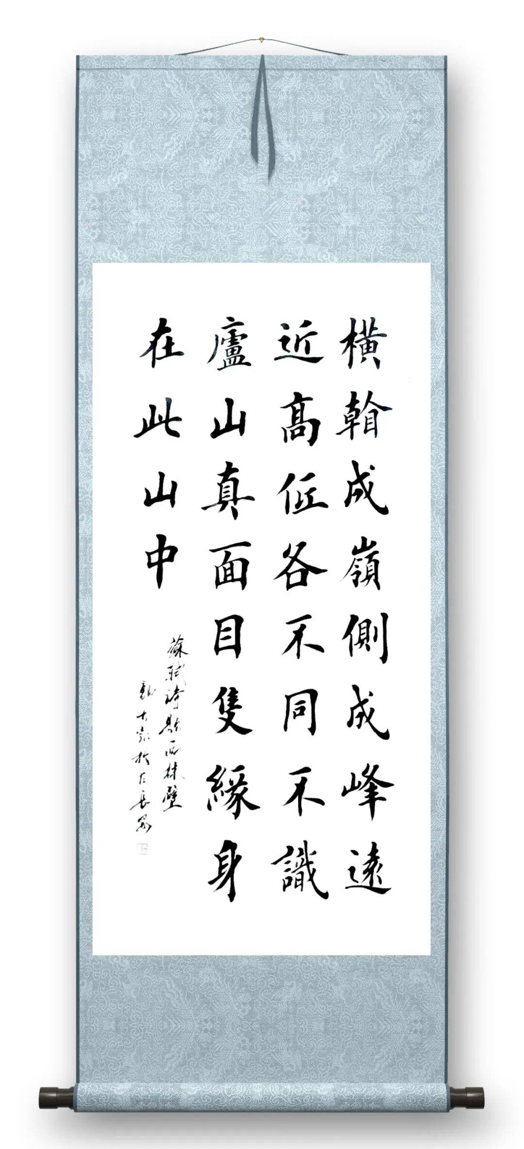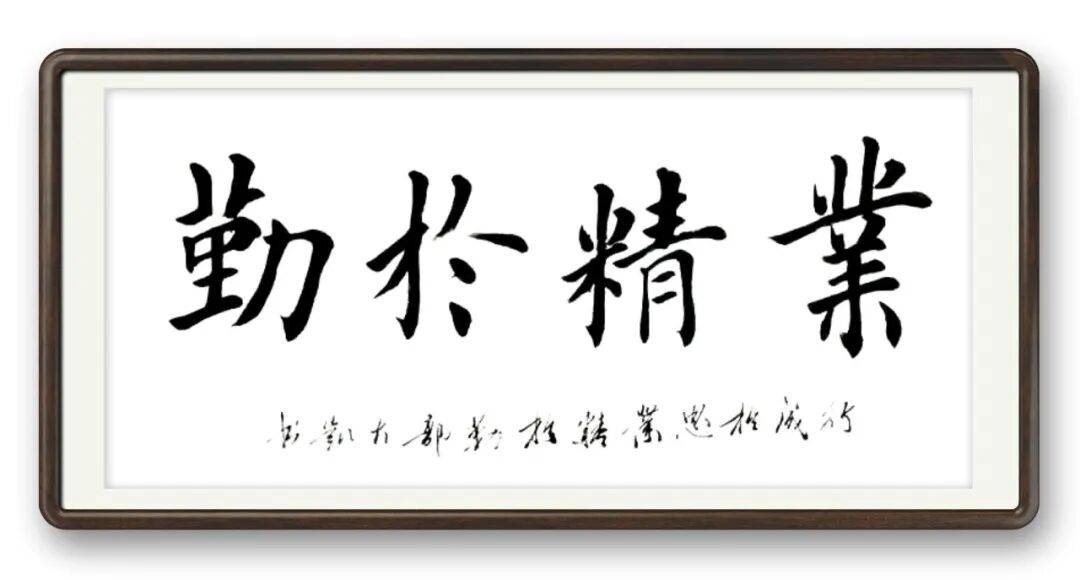郭大凯的书法,最动人之处在于“守正创新,雅俗共赏”。他浸淫笔墨数十载,不困于一家之法,兼收欧颜柳赵诸家精髓,以楷书为根基,旁涉行草篆隶,形成了独树一帜的笔墨风格。其笔法方圆相济,藏露得宜,起笔沉稳有力,行笔流畅自然,收笔利落干净,无一丝拖沓之感。结字上,他深谙穿插避让之理,均衡对称中见变化,疏密错落间显章法,即便大字也不失精致,小字亦饱含气韵。尤为难得的是他的“仿毛体”,并非简单模仿形似,而是抓住其精神内核,线条苍劲洒脱,墨色浓淡相宜,在参差错落的布局中,彰显出大气磅礴的气度,既有山河壮阔的豪迈,又有笔墨传情的细腻。