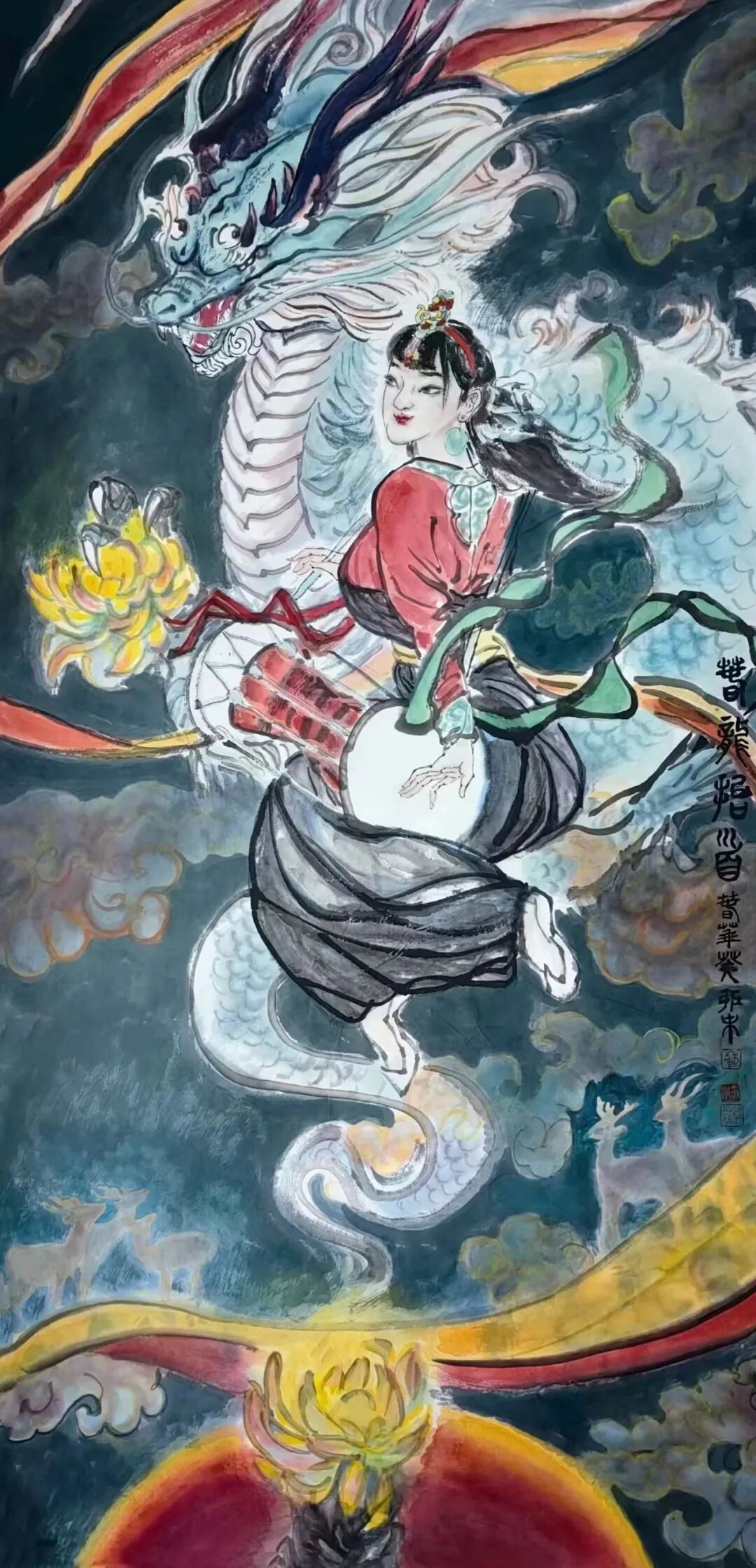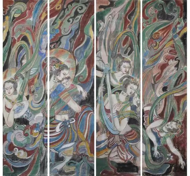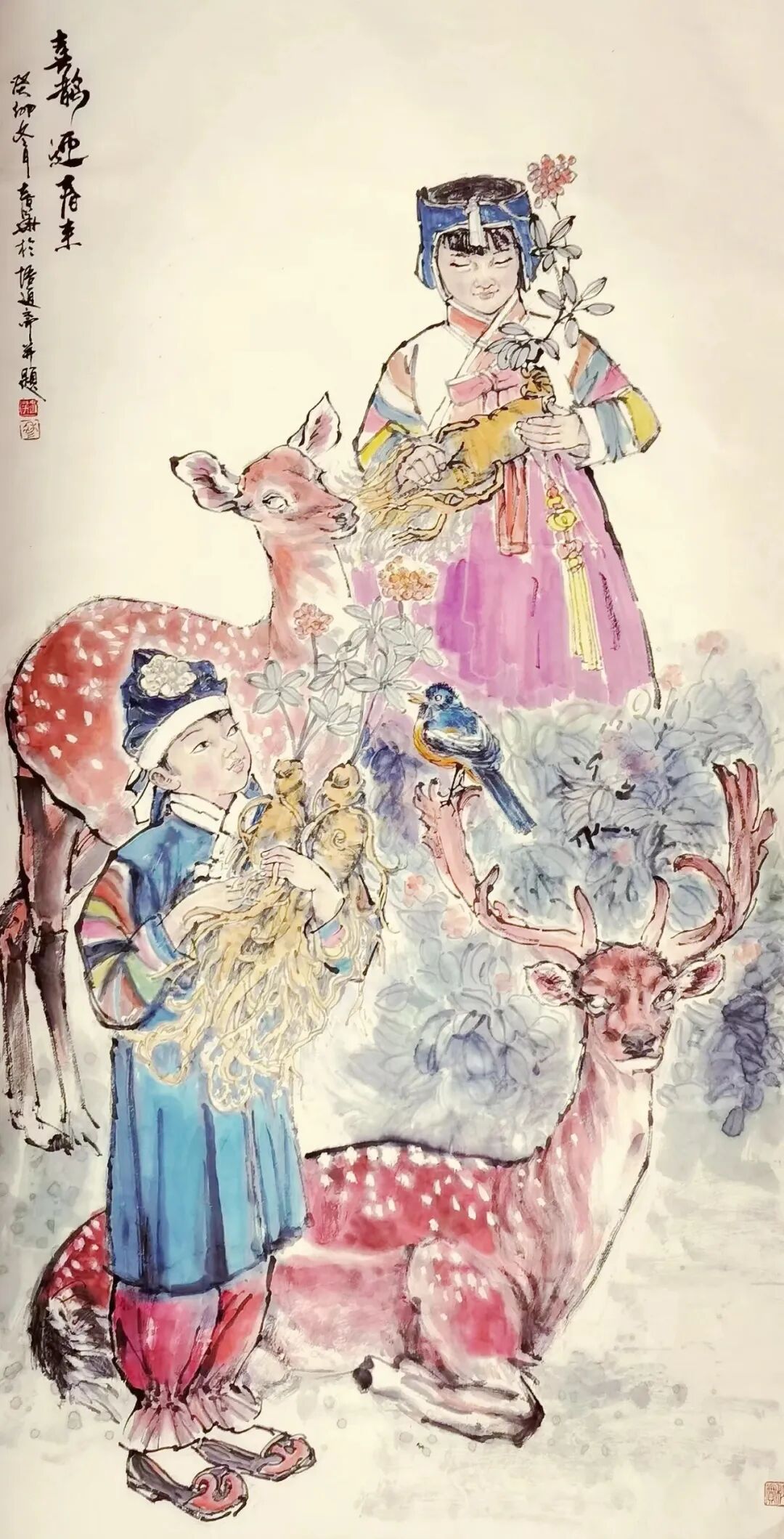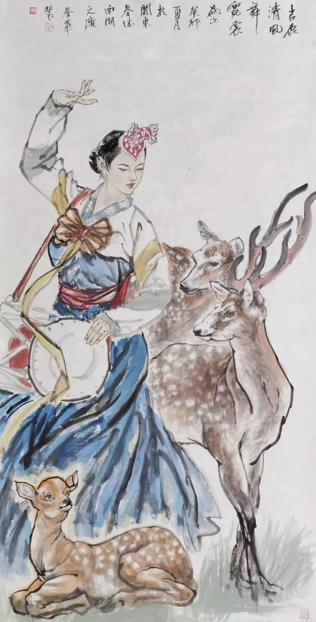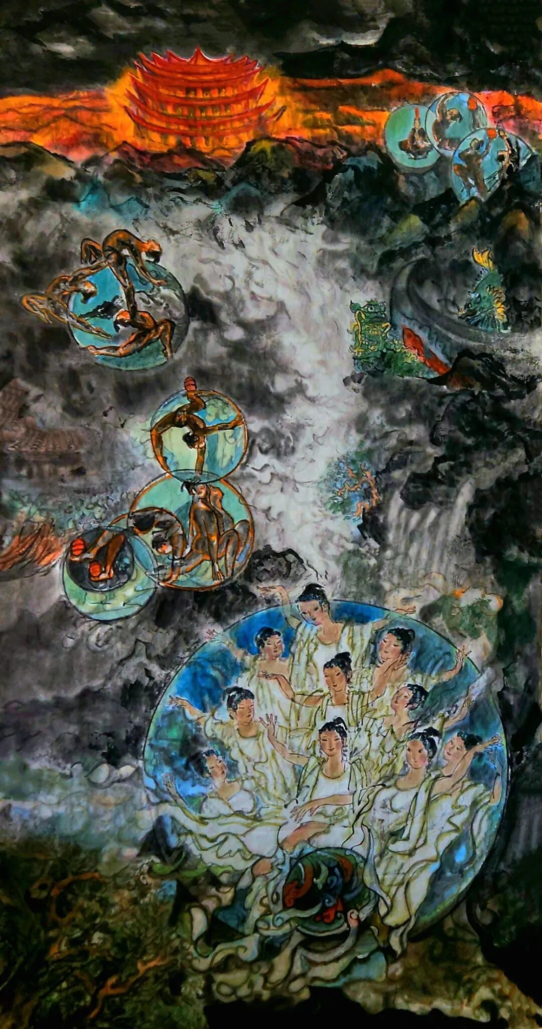 春子的艺术,从本质上说,是梦境的营造,从敦煌璧画到现实生活图景,都被艺术化为鲜明的形式表现,这些形式創造又突破了客观规律的桎梏,跳跃出逻辑关系的理性圈套,使画面在不确定的动态之中,充满动态,充满生机,在元气郁勃之中展示出艺术本色与表现魅为。
