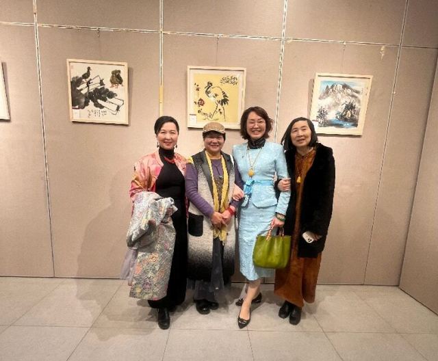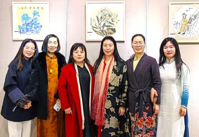 在展览开幕式上,参加展览的女画家们即兴表演了小合唱,烘托了展厅气氛,使画家与观众的交流更加融合。
