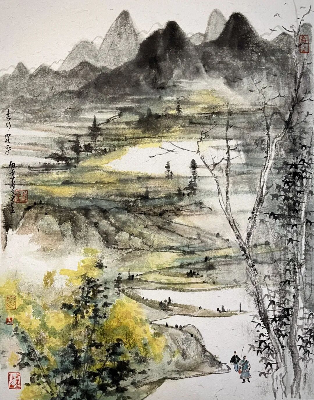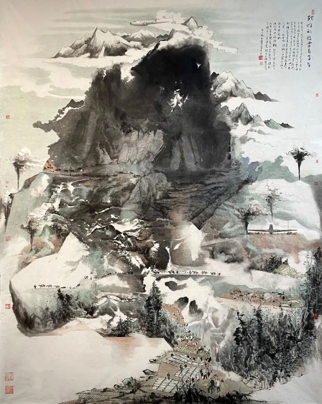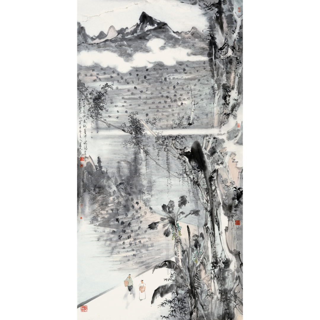云南地理环境在宽广的整体中有其鲜明的特质,换言之它有着一种奇特的华美。对于艺术创作主体来说:它的地域特征会影响它的技术成分,并通过技术成分再影响它的社会成分和观念成分。用水墨怎样表达这种地域特质?这是一项有着较高技术性含量的课题。从肖凡的作品看:他正朝这方向努力求索,努力耕耘。《乌蒙春行图》《万峰山色》《红河写生册》这一时段的作品,无论是笔墨与形式方面或是形式与内容关系,已预示方向性研究的积极因素,若肖凡把水墨山水画出地方特色,画出云南画风,是值得赞赏的。肖凡对家乡的自然景观情有独钟,通俗一点说:他爱这片热土。也是值得敬意的。然而,艺术它是人类共同认同的形而上的大概念。就艺术本体来说它是多元的、宽泛的、非功利性的,艺术植根于人的心理需要,而且满足了人的心理需要。艺术若以人的知性作为坐标,那么这种艺术所表现宏观上不再是局限于时间、空间、区位……的思维与表达。微观上不再是局限于对客体物表层的探讨和描写。