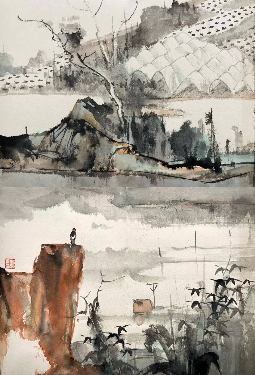 肖凡的画面中,画的不再是客体中那座山,水不再是那道水,而是一幅幅经智性提炼的、他胸中的景观,他将自然的真实化为艺术的真实。作品承载着情与理的合力,在知性的深层次中闪烁着云南绿水青山明亮的光华。