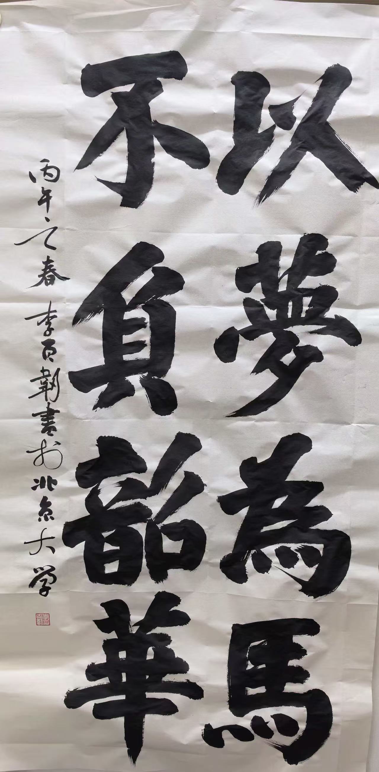 在实践创作方面,学院为李俸春提供了良好的创作环境和丰富的创作资源。他经常参加各种书法创作活动和比赛,与同学们相互交流、切磋技艺。在这个过程中,他不断尝试新的创作手法和表现形式,将所学的理论知识运用到实际创作中。他的作品逐渐展现出独特的艺术风格,既保留了传统书法的韵味和神韵,又融入了现代艺术的元素和理念,给人一种耳目一新的感觉。